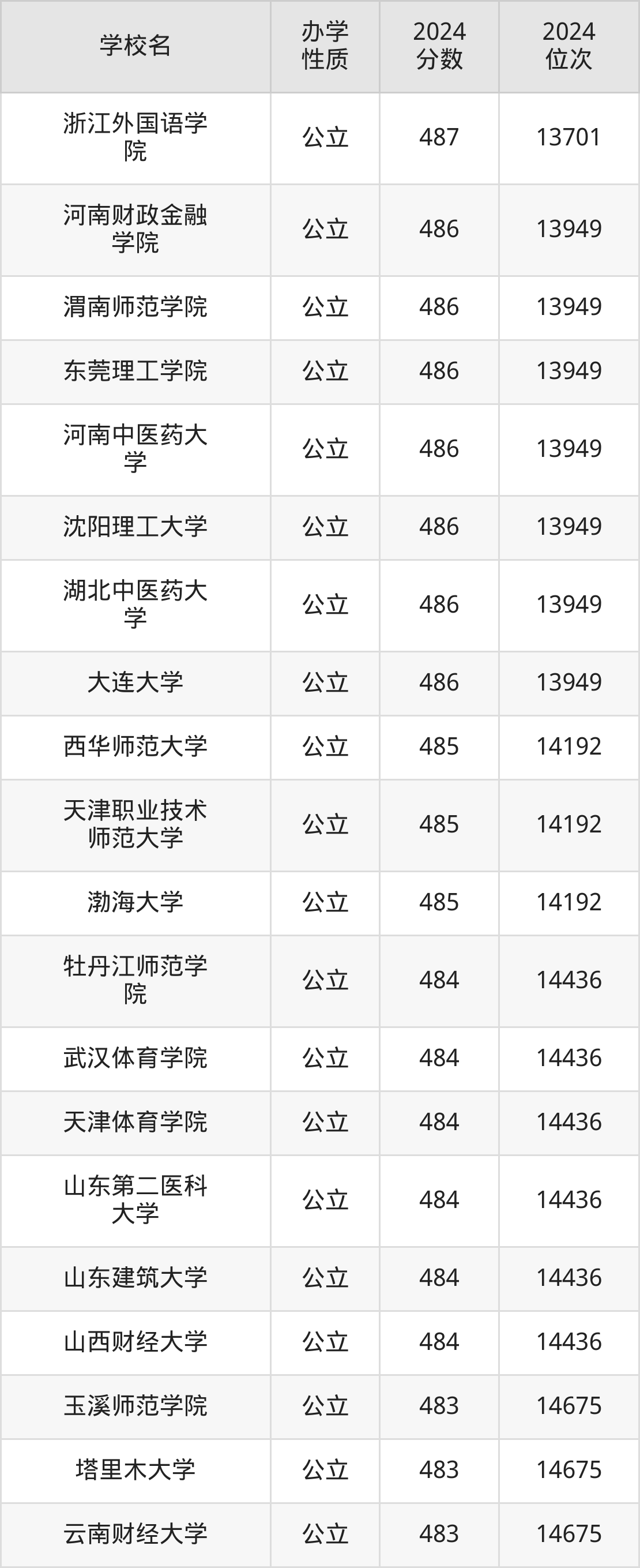 | 学校名 | 2024 分数 | 2024 位次 |