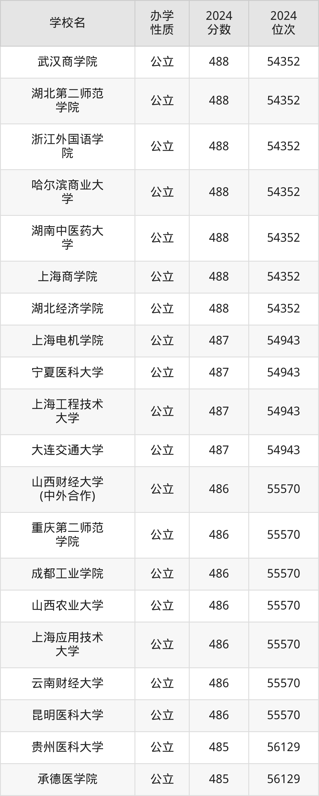 | 武汉商学院 | 488 | 54352 |