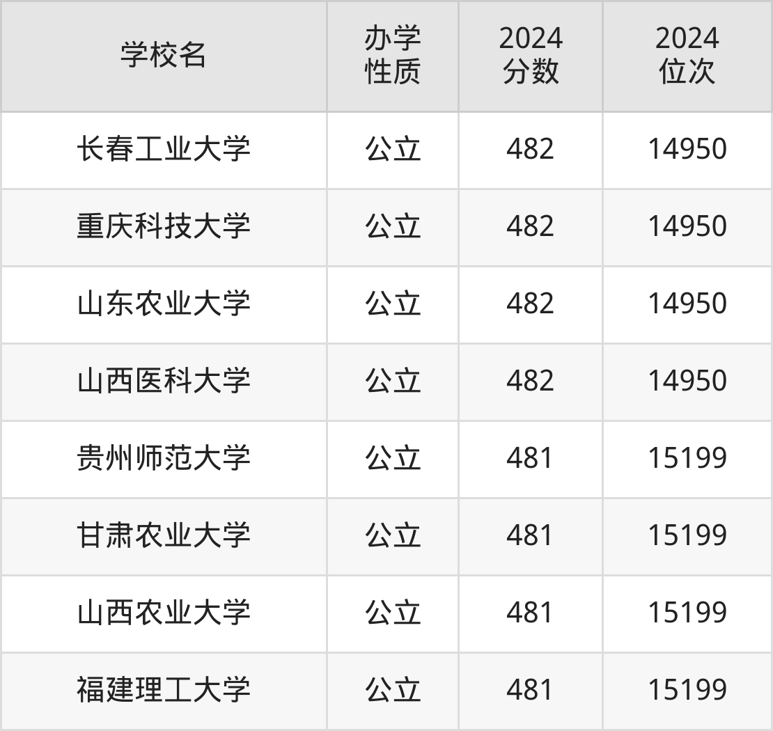 | 山西农业大学 | 481 | 15199 |
