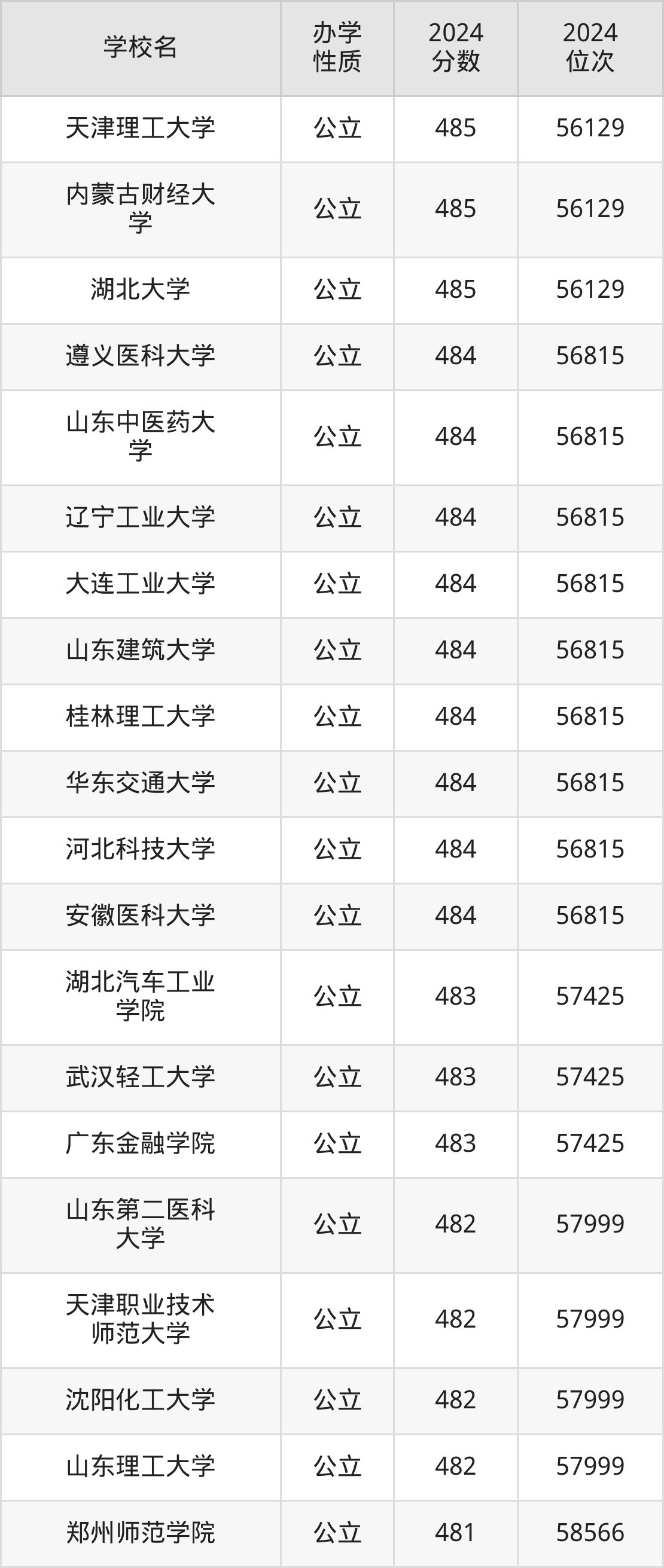 | 湖北大学 | 485 | 56129 |