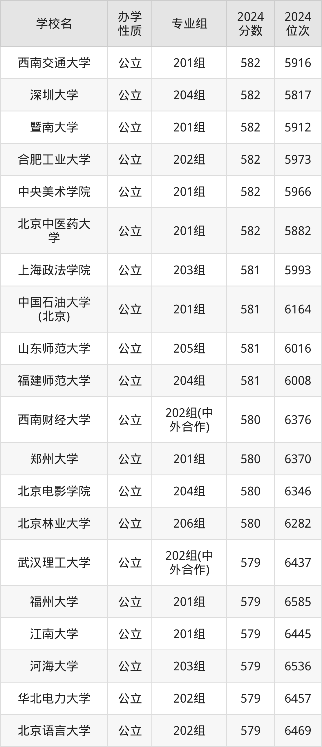 | 西南交通大学 | 208组(中 外合作) | 573 | 43749 |
