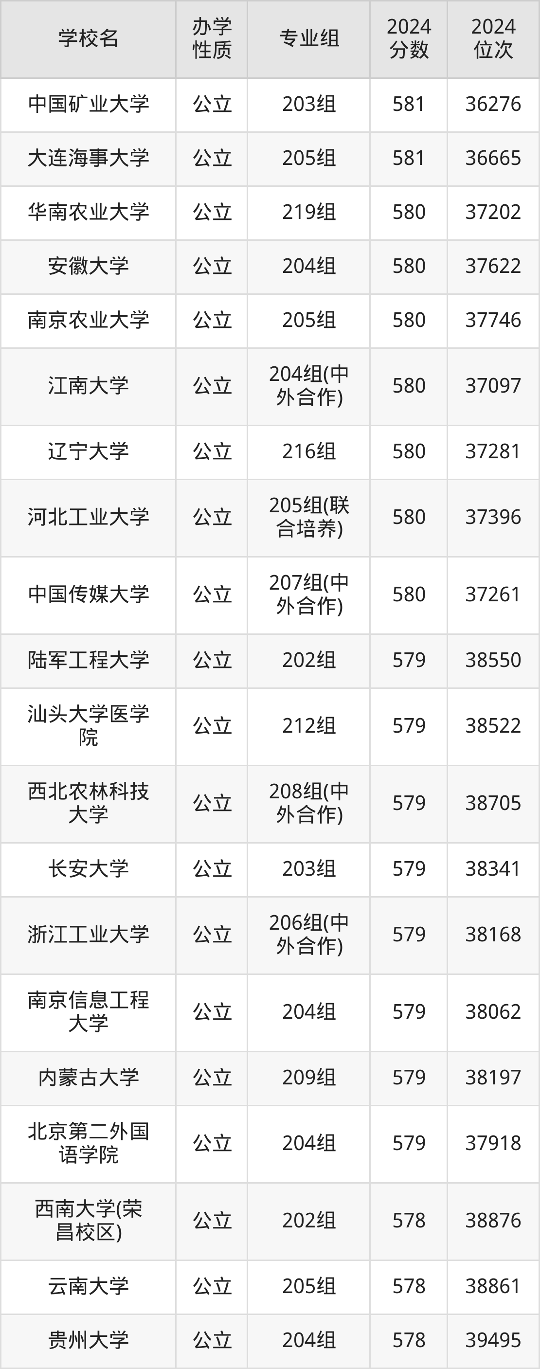 | 长安大学 | 205组(中 外合作) | 578 | 39742 |
