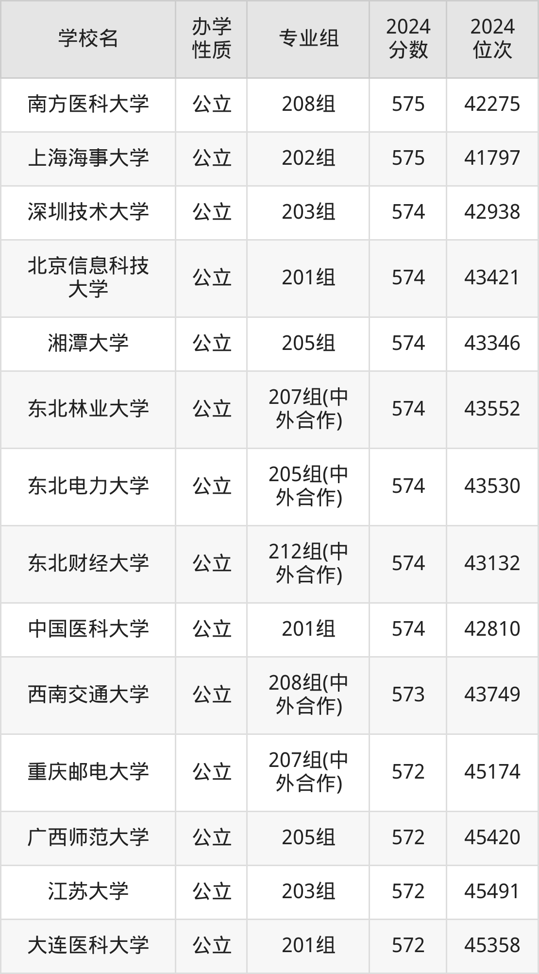 | 学校名 | 专业组 | 2024 分数 | 2024 位次 |