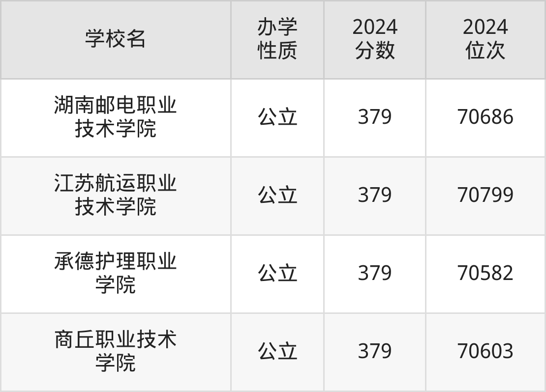 | 湖南邮电职业 技术学院 | 379 | 70686 |