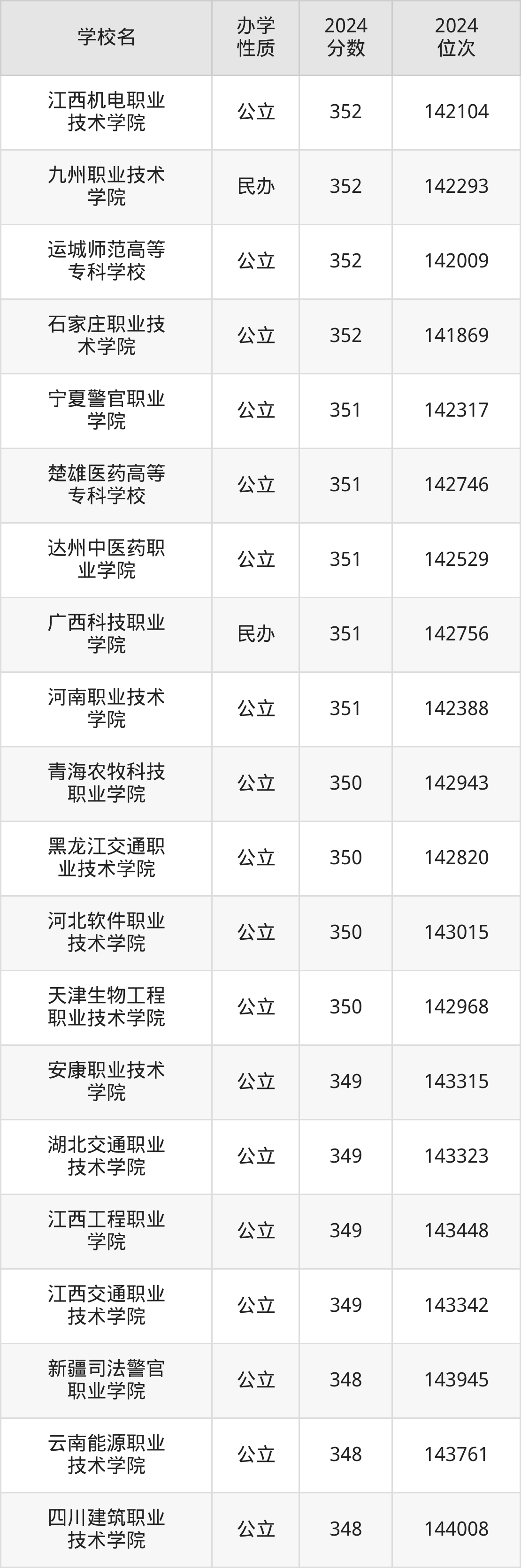 | 江西司法警官 职业学院 | 353 | 141501 |