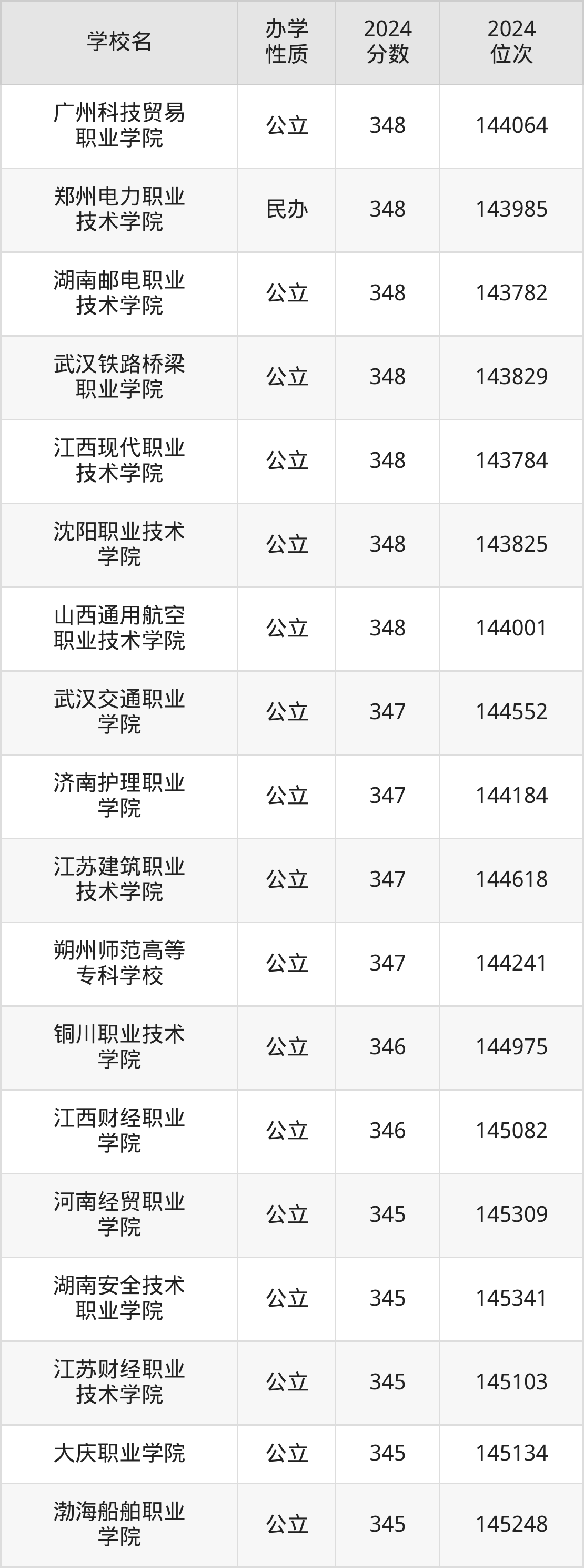 | 渤海船舶职业 学院 | 345 | 145248 |
