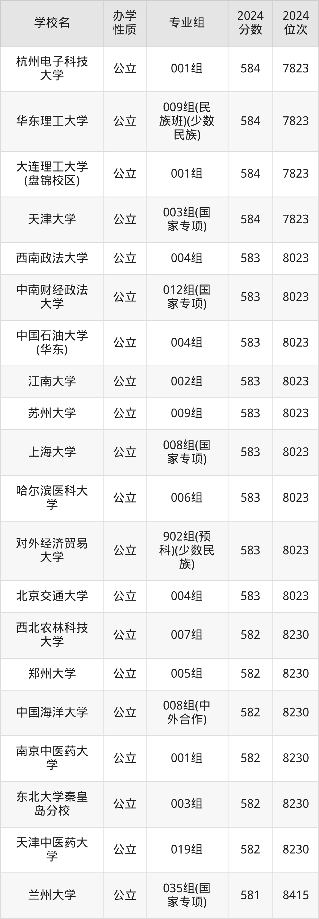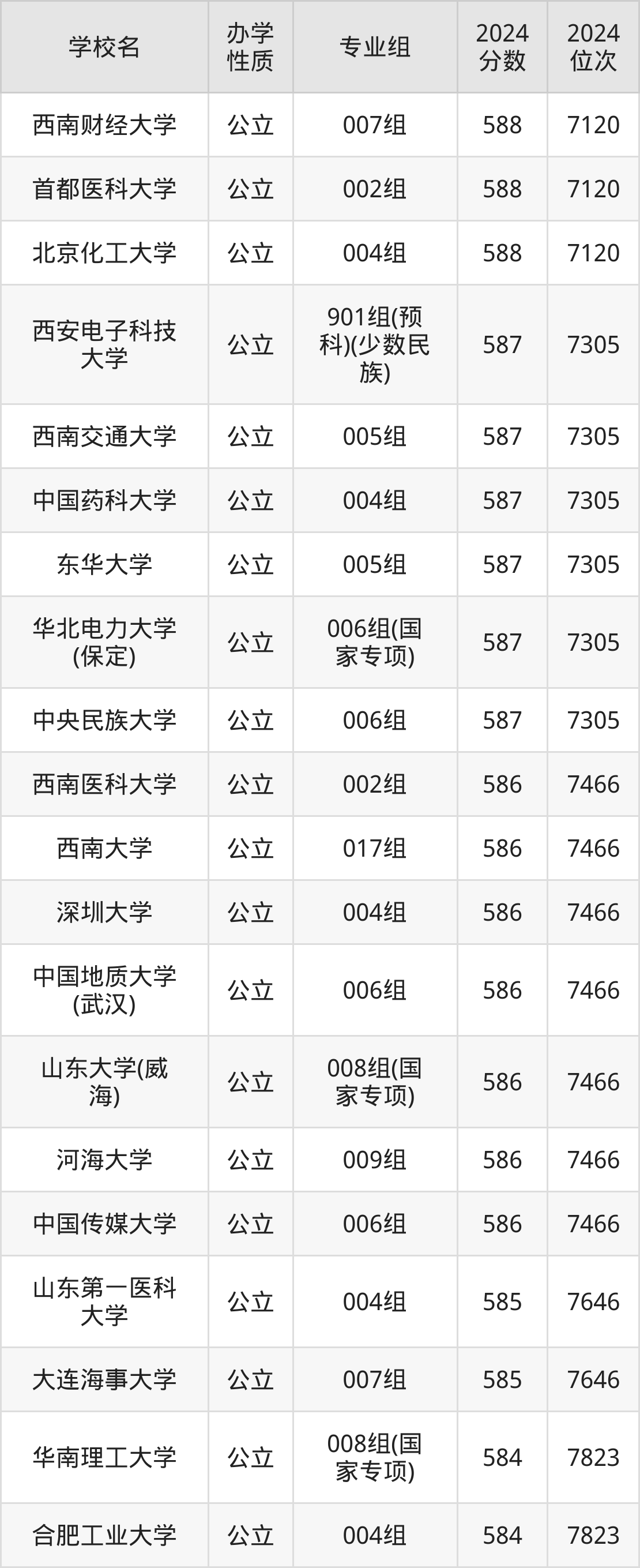| 学校名 | 专业组 | 2024 分数 | 2024 位次 |