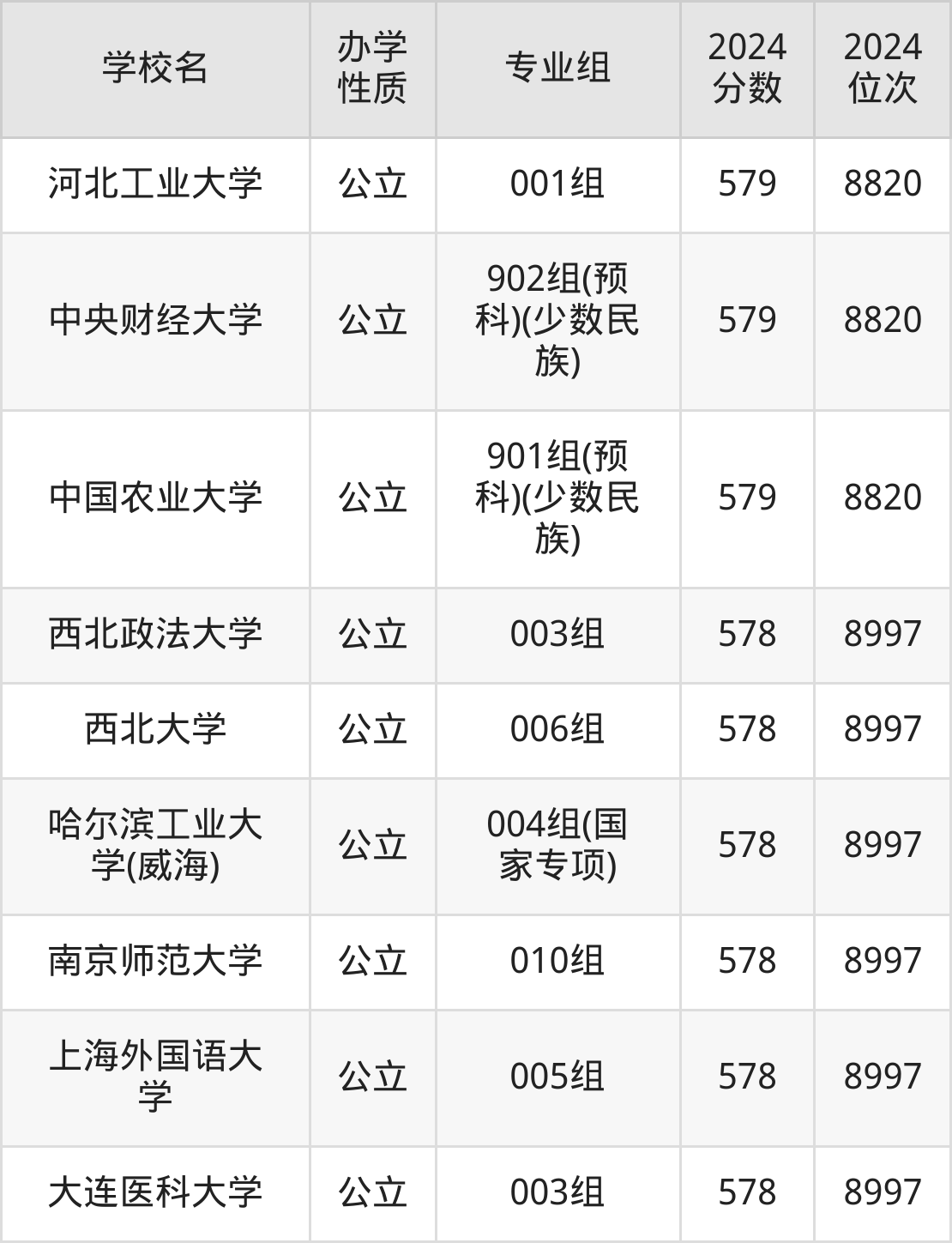 | 中国农业大学 | 901组(预 科)(少数民 族) | 579 | 8820 |