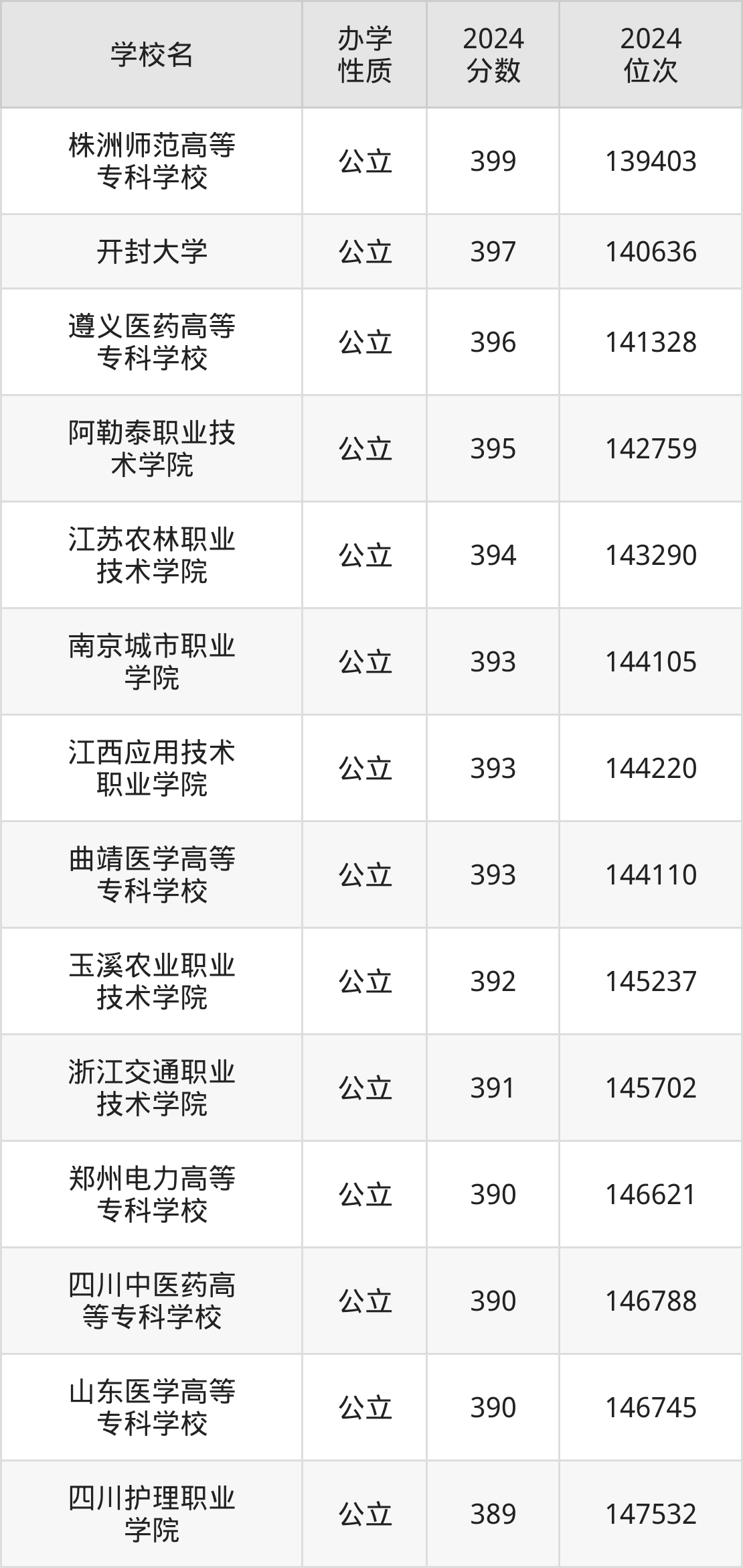 | 四川护理职业 学院 | 389 | 147532 |