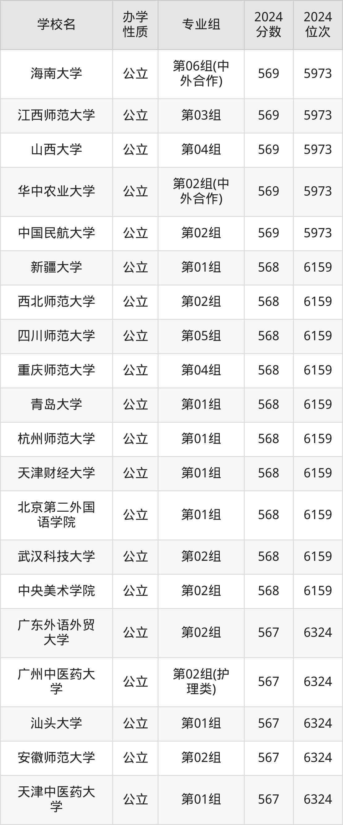 为了方便2025届考生了解自己能上哪些大学,本文也整理出了湖北567分左右能上的所有大学名单,供2025年考生参考。