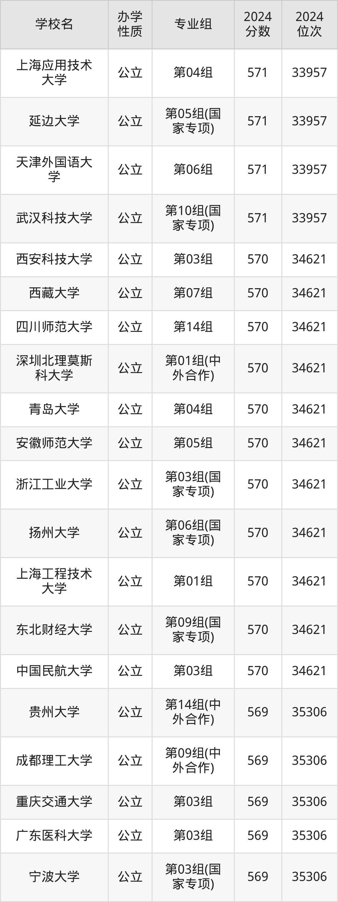 | 延边大学 | 第05组(国 家专项) | 571 | 33957 |