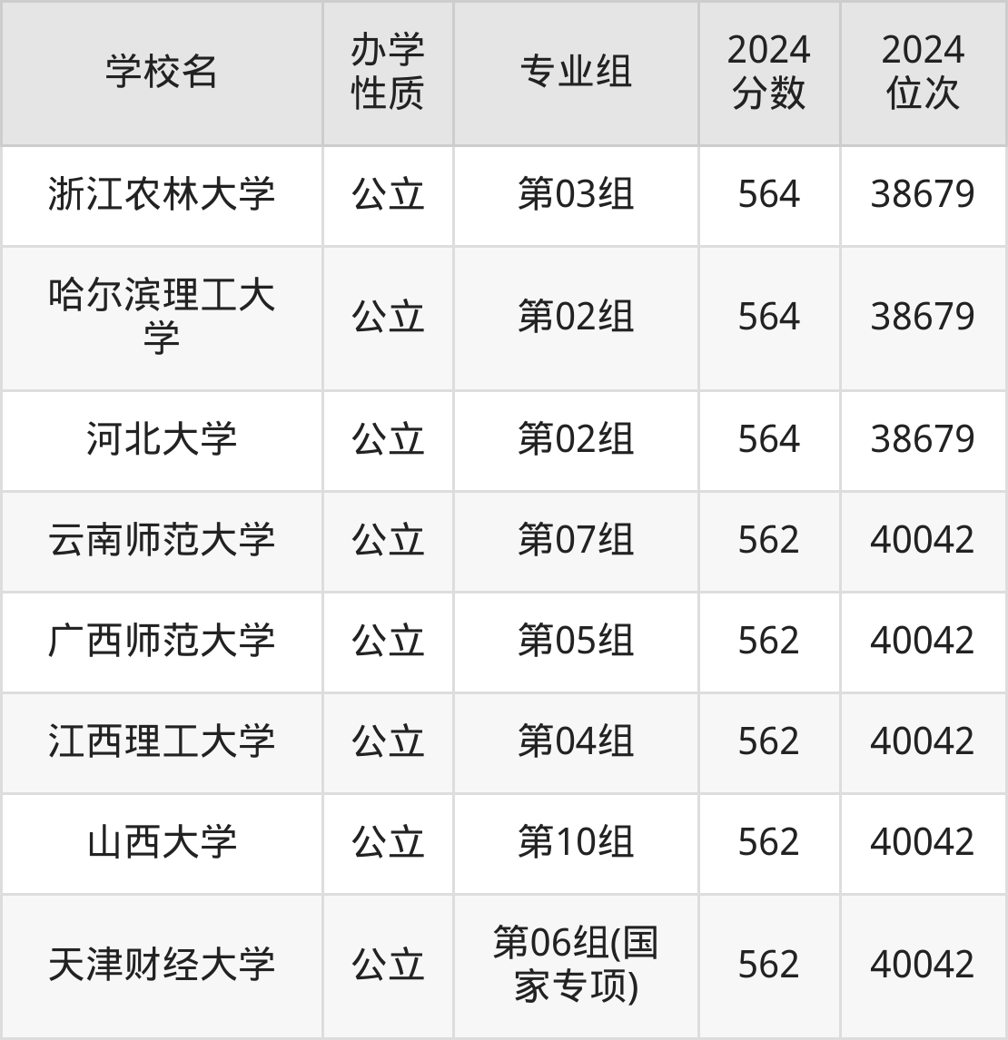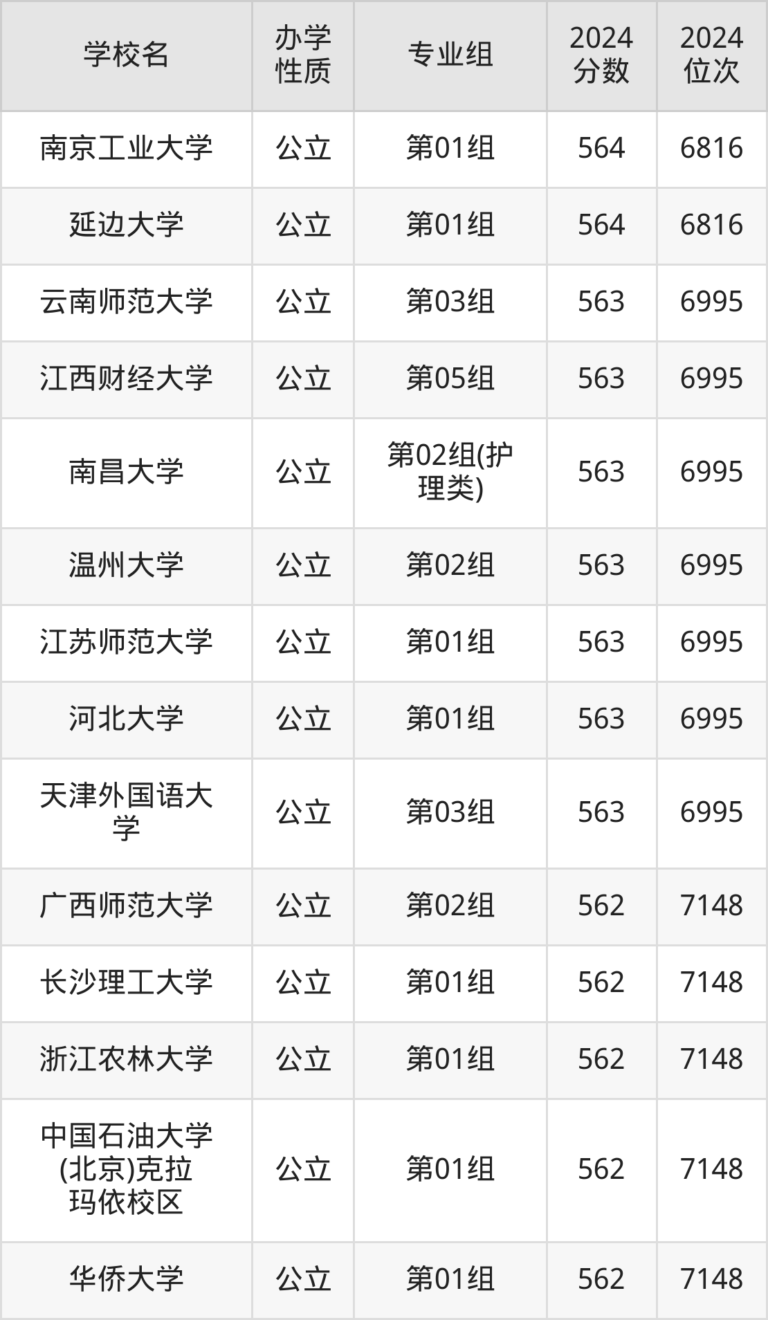 | 学校名 | 专业组 | 2024 分数 | 2024 位次 |