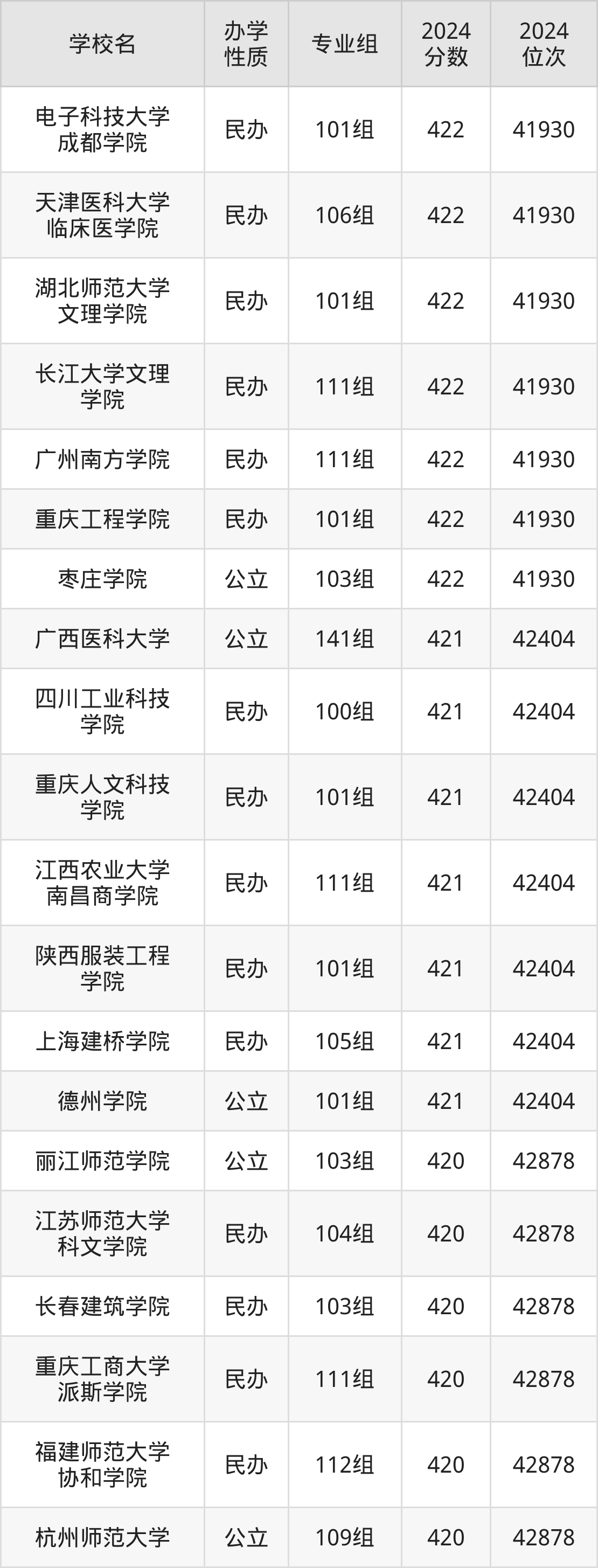 | 重庆人文科技 学院 | 101组 | 421 | 42404 |