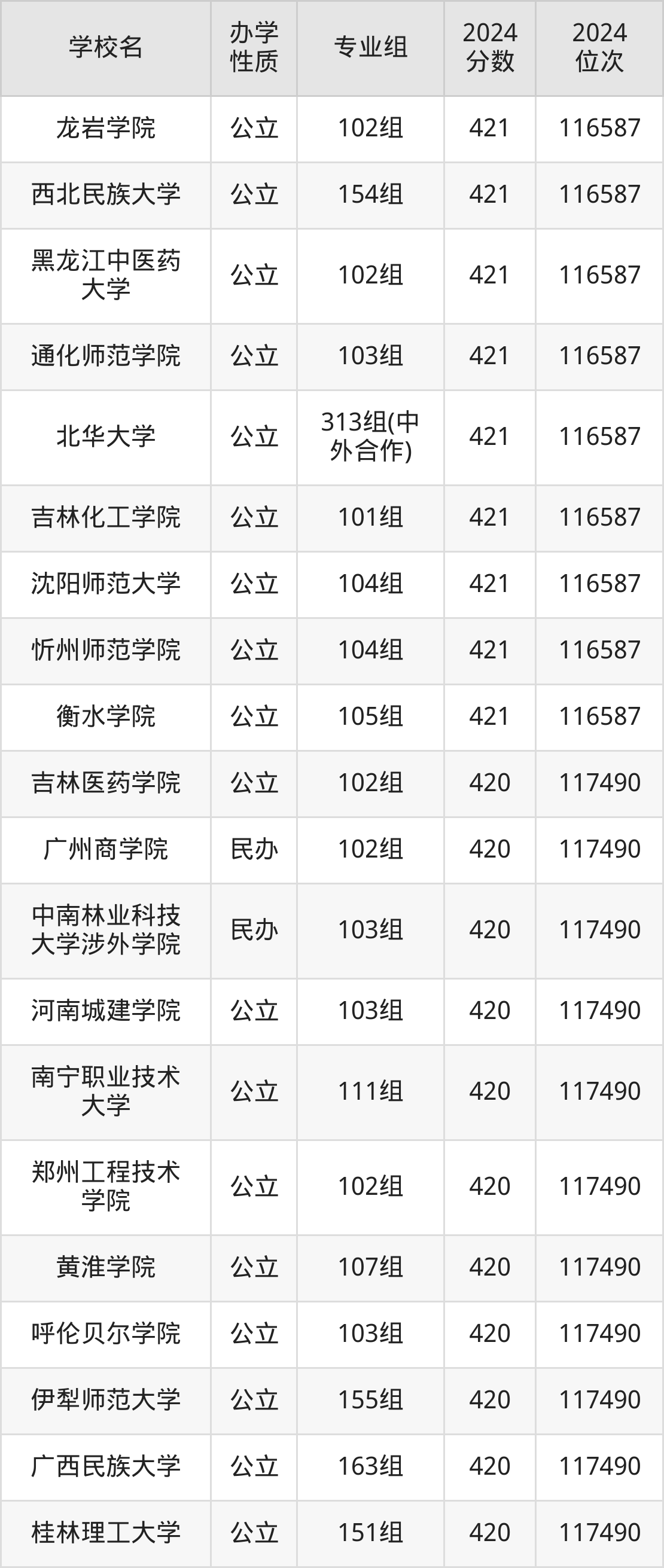 | 西北民族大学 | 154组 | 421 | 116587 |