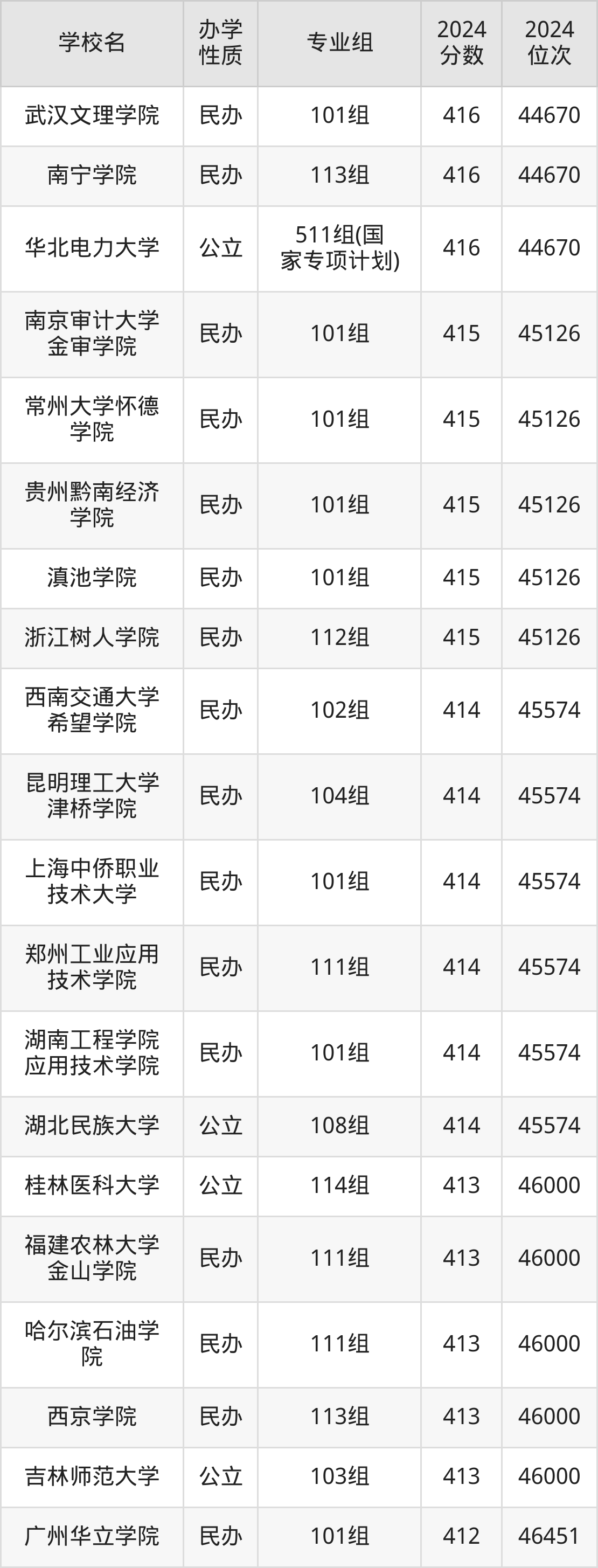 | 华北电力大学 | 511组(国 家专项计划) | 416 | 44670 |