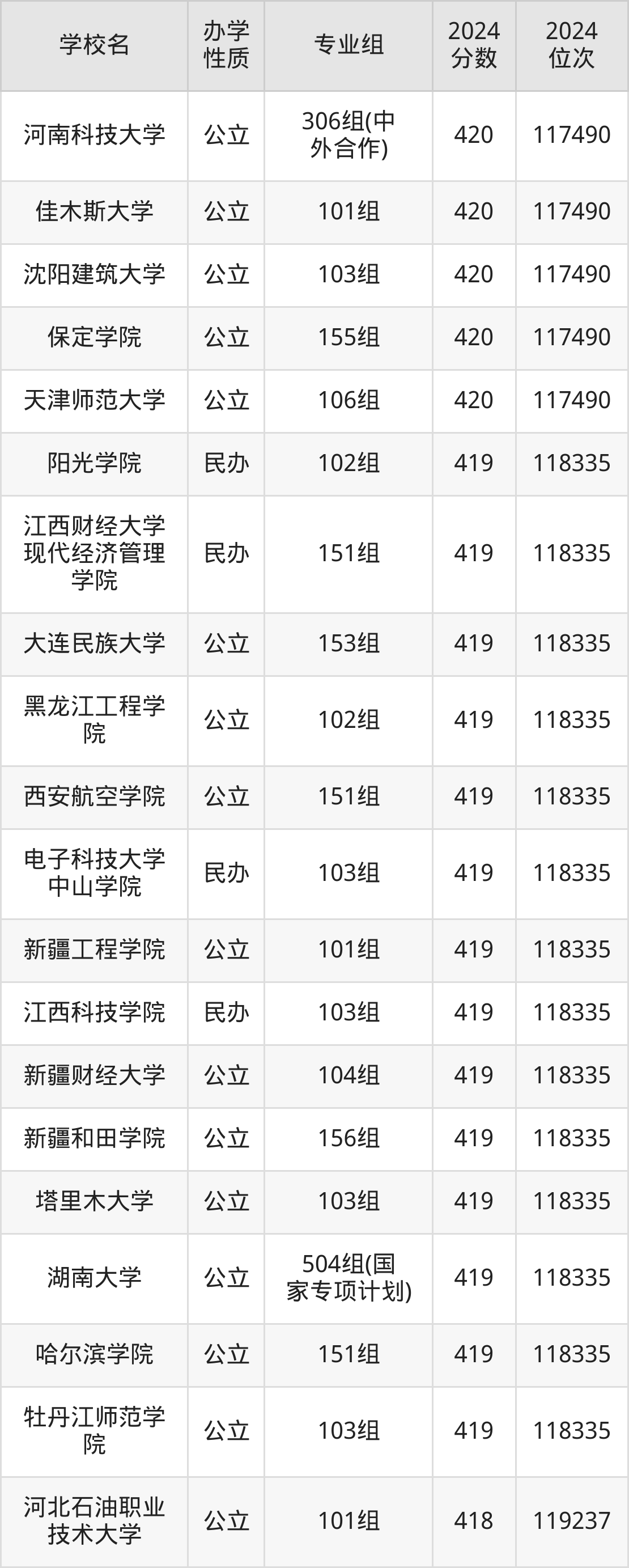 | 学校名 | 专业组 | 2024 分数 | 2024 位次 |