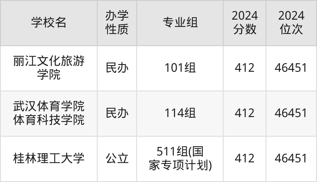 | 桂林理工大学 | 511组(国 家专项计划) | 412 | 46451 |