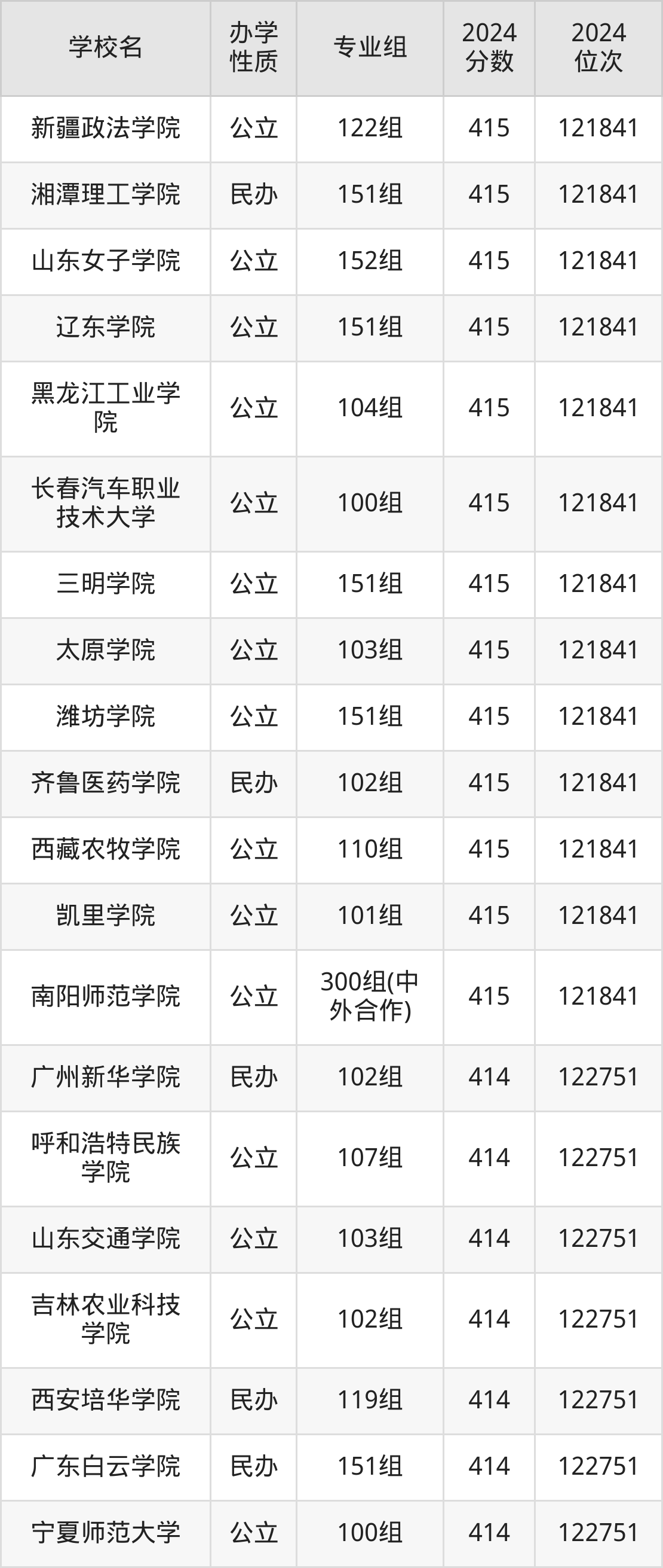 | 西安培华学院 | 119组 | 414 | 122751 |