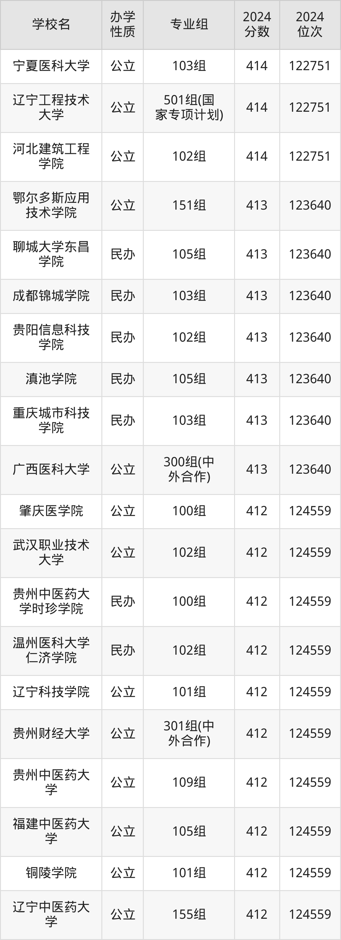 | 吉林医药学院 | 320组(中 外合作) | 413 | 123640 |