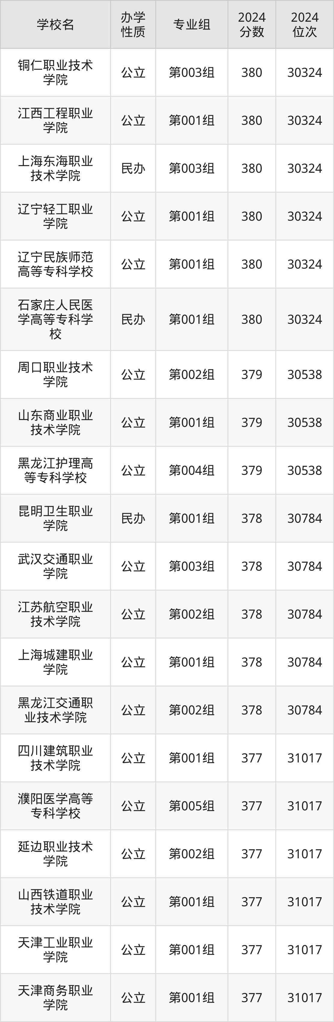 | 石家庄人民医 学高等专科学 校 | 第001组 | 380 | 30324 |