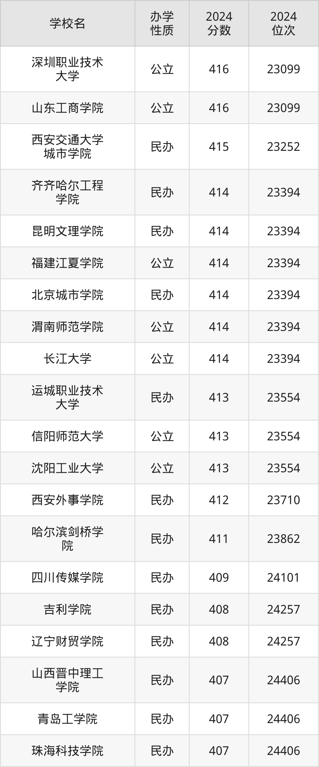 | 山西晋中理工 学院 | 407 | 24406 |