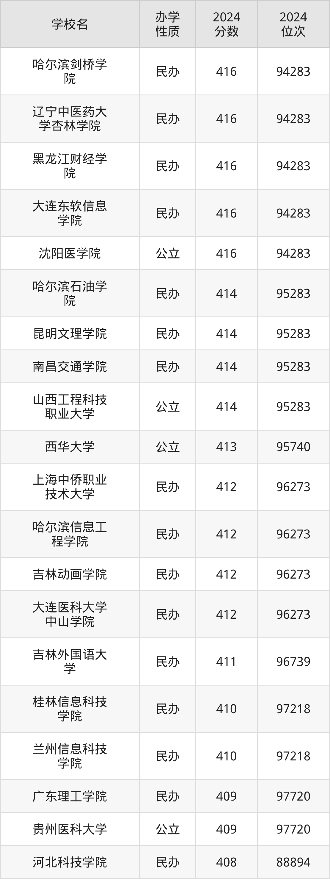 | 吉林动画学院 | 412 | 96273 |
