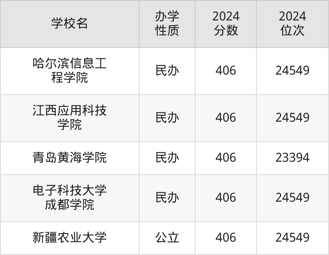 | 哈尔滨信息工 程学院 | 406 | 24549 |