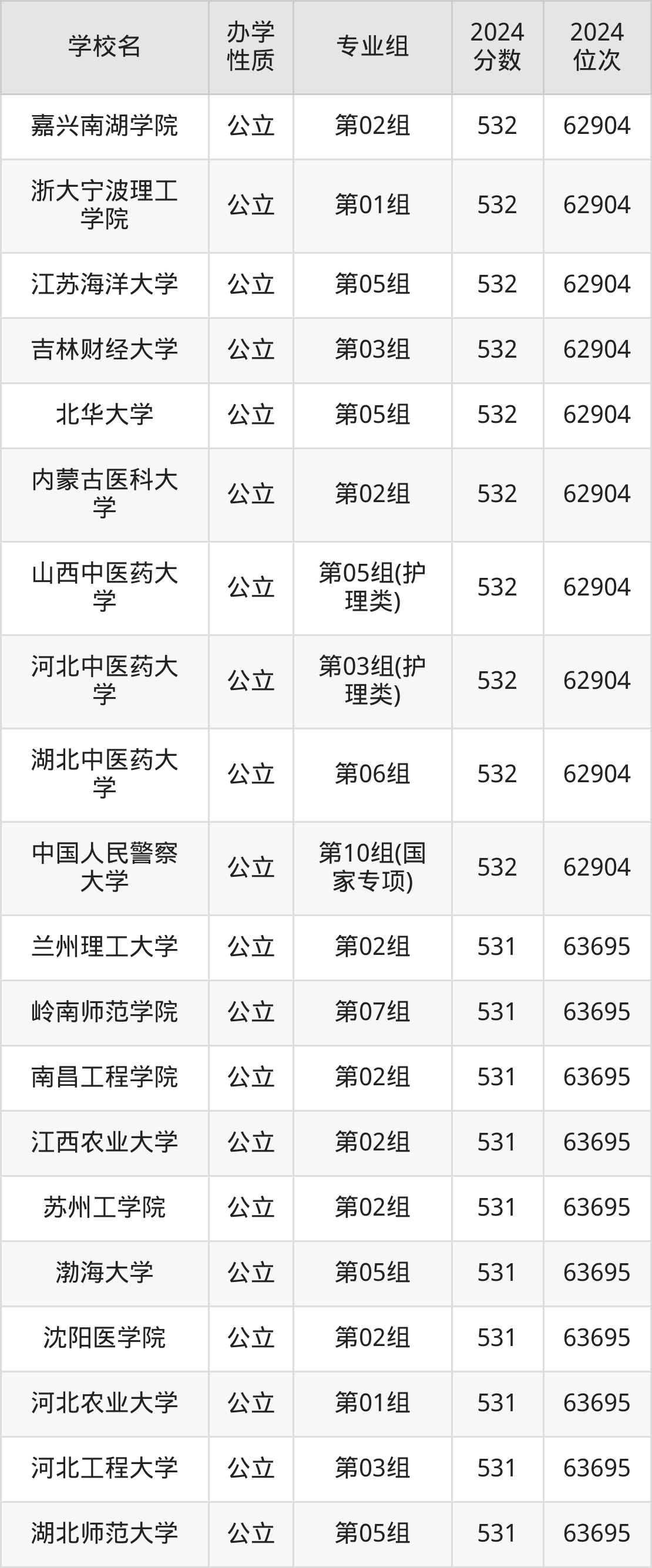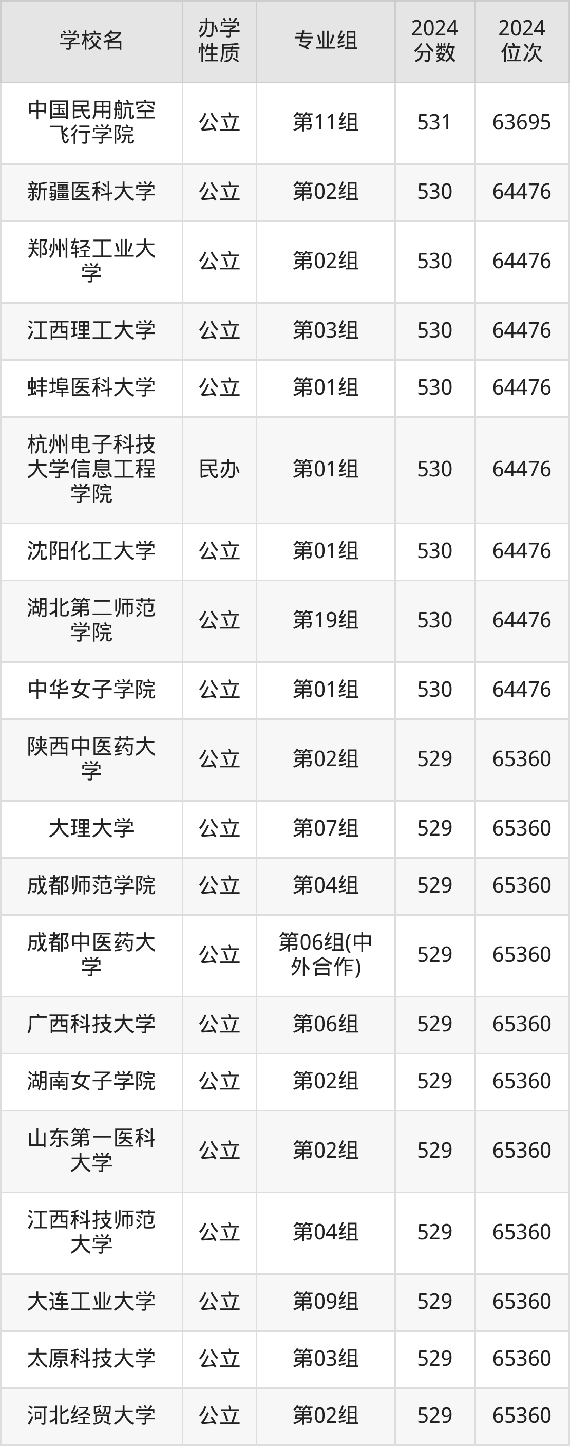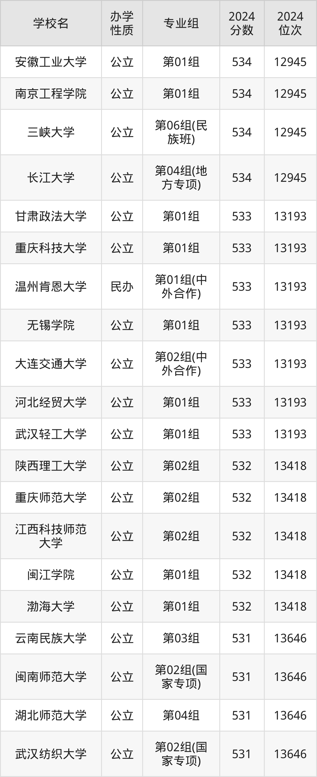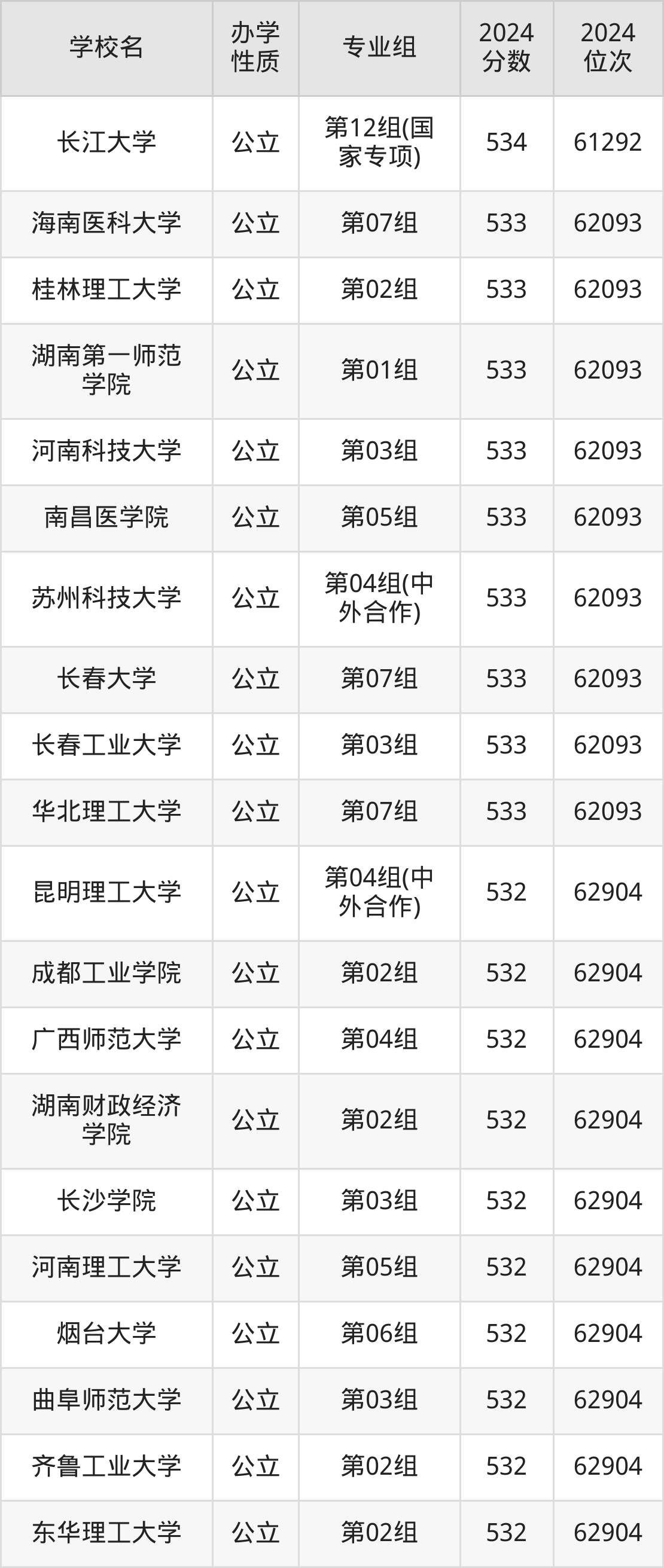| 学校名 | 专业组 | 2024 分数 | 2024 位次 |
