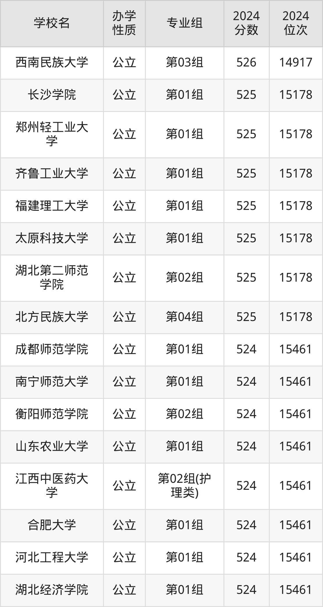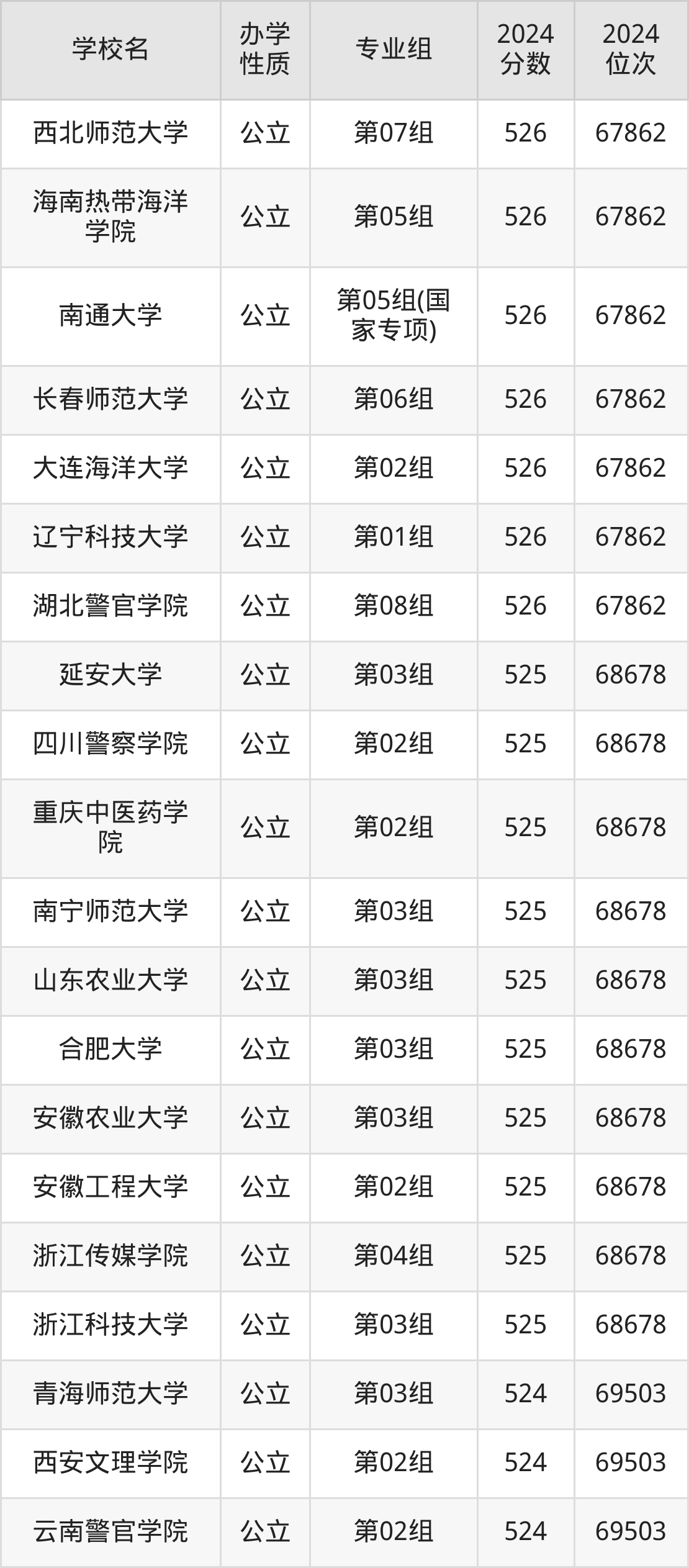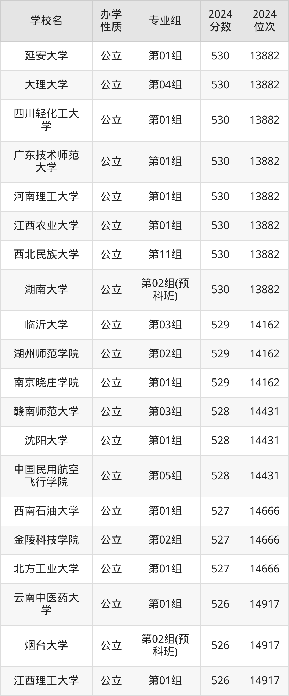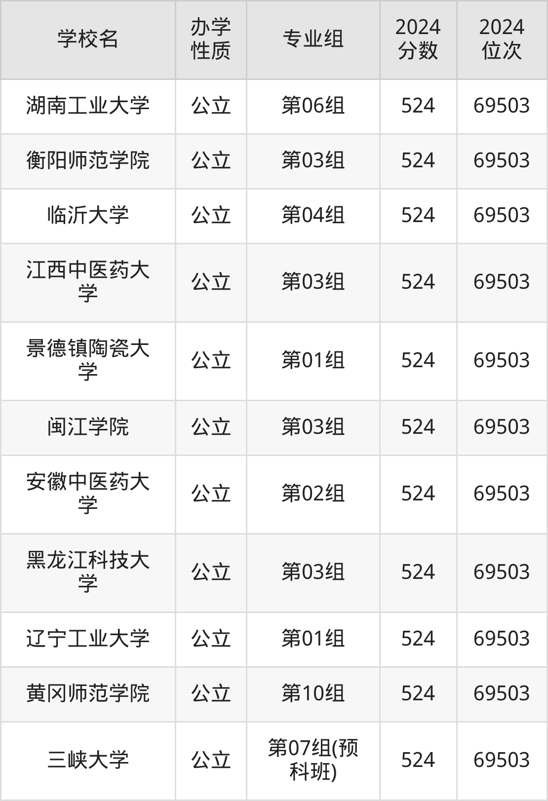 | 学校名 | 专业组 | 2024 分数 | 2024 位次 |