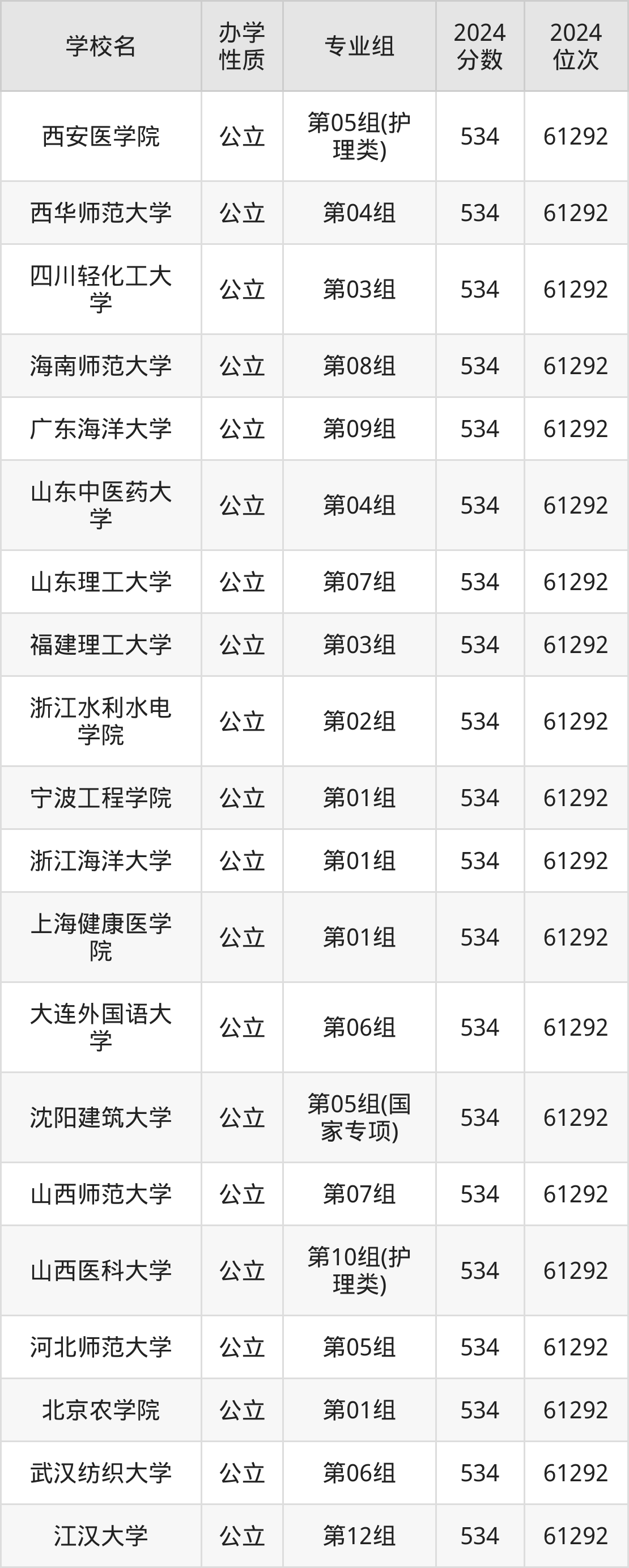 | 山西医科大学 | 第10组(护 理类) | 534 | 61292 |