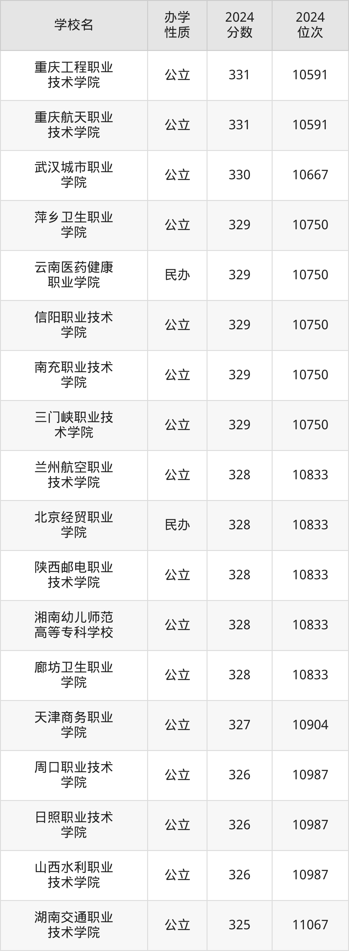 | 萍乡卫生职业 学院 | 329 | 10750 |