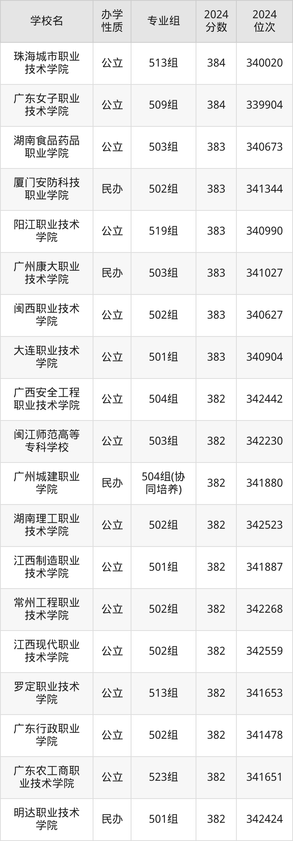 | 广东行政职业 学院 | 502组 | 382 | 341478 |