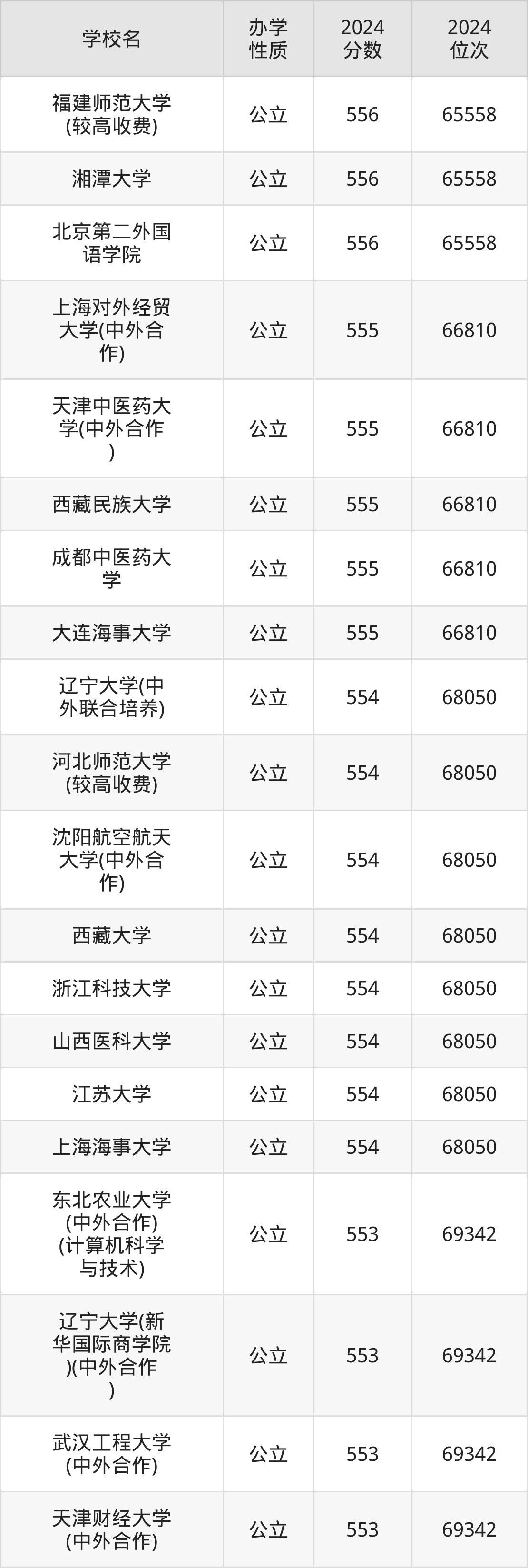 | 学校名 | 2024 分数 | 2024 位次 |