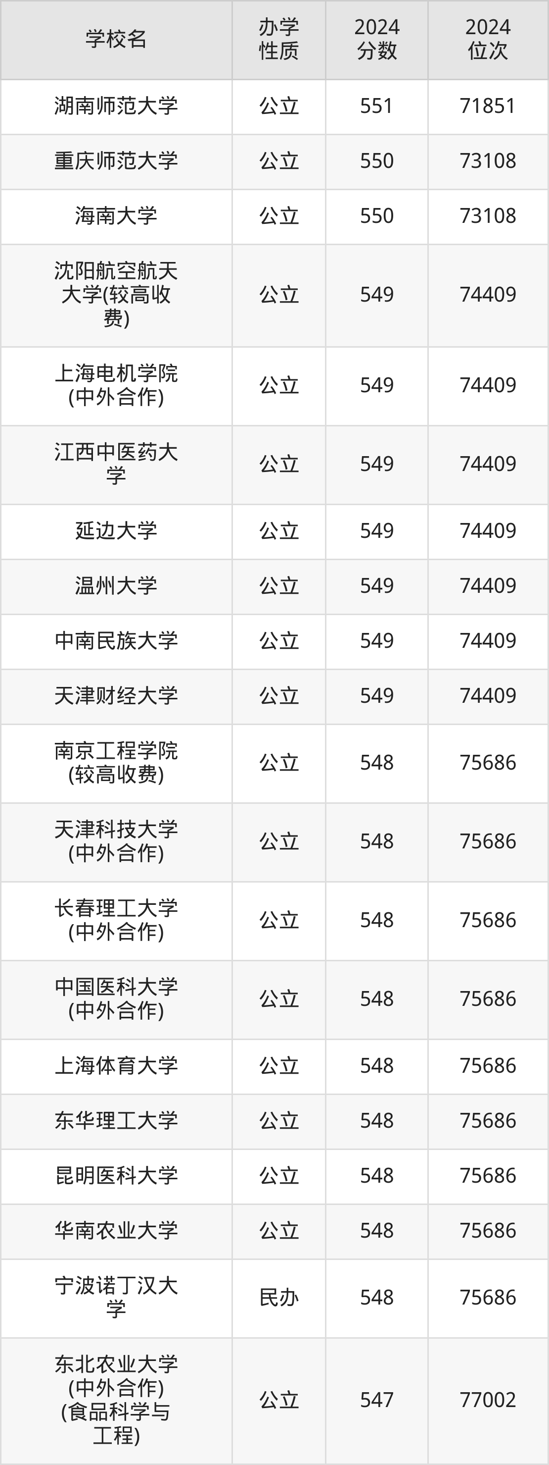 | 海南大学 | 550 | 73108 |