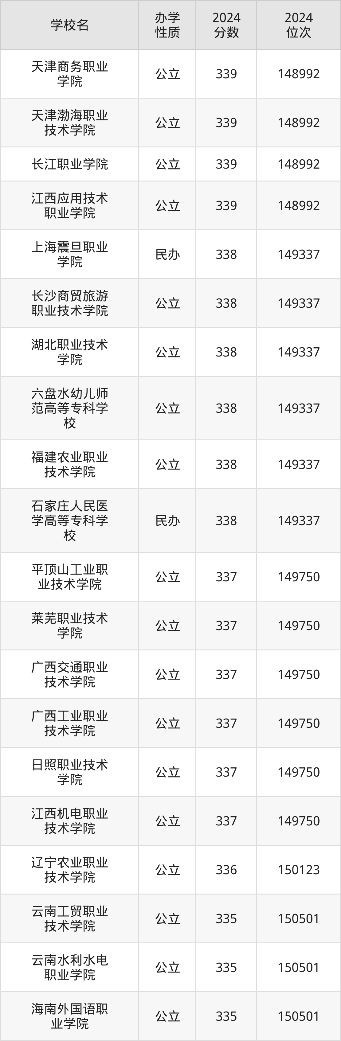 | 辽宁农业职业 技术学院 | 336 | 150123 |