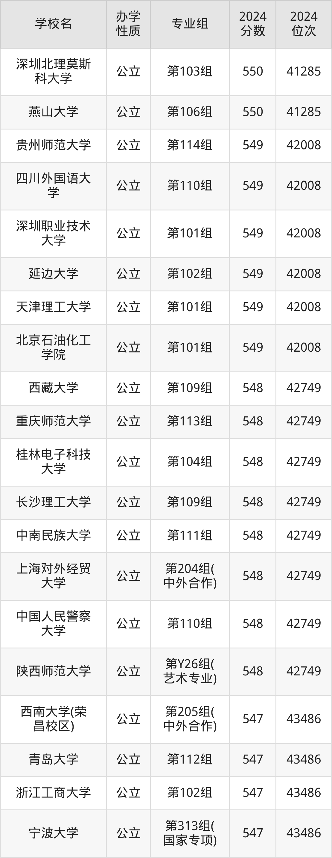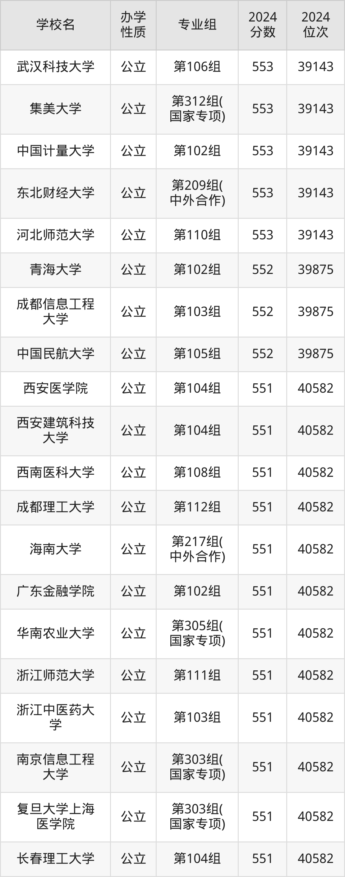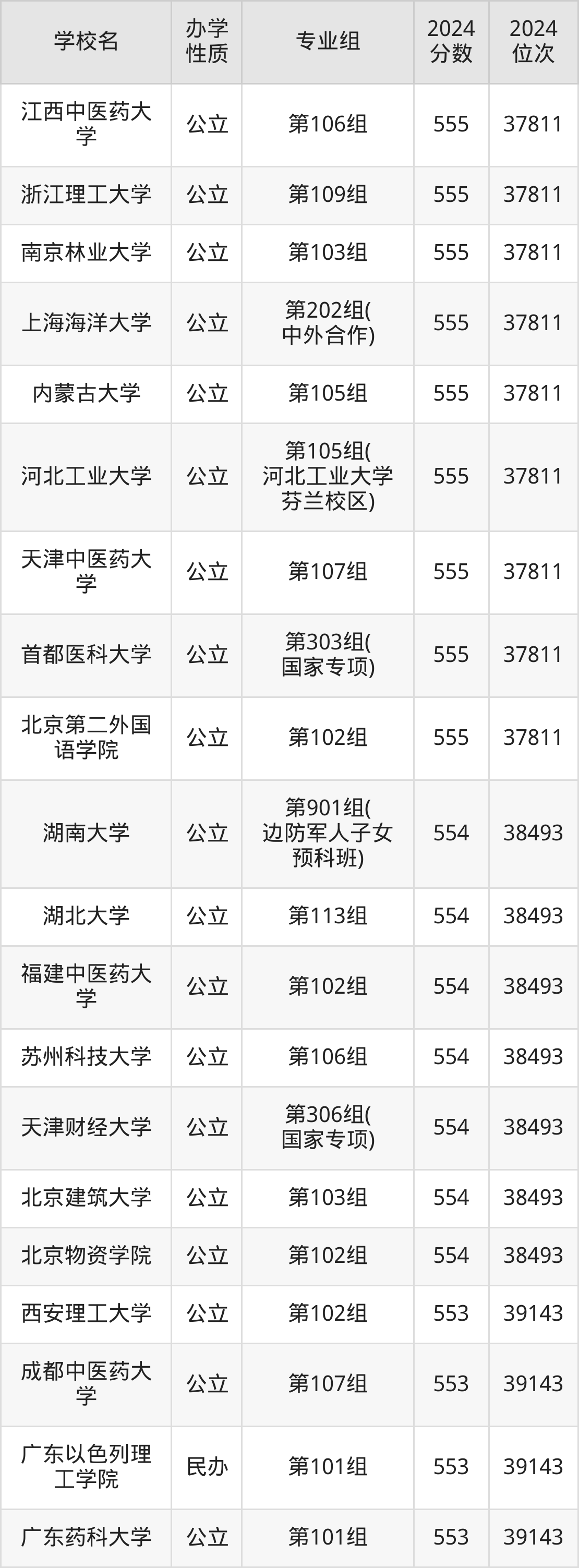 | 学校名 | 专业组 | 2024 分数 | 2024 位次 |