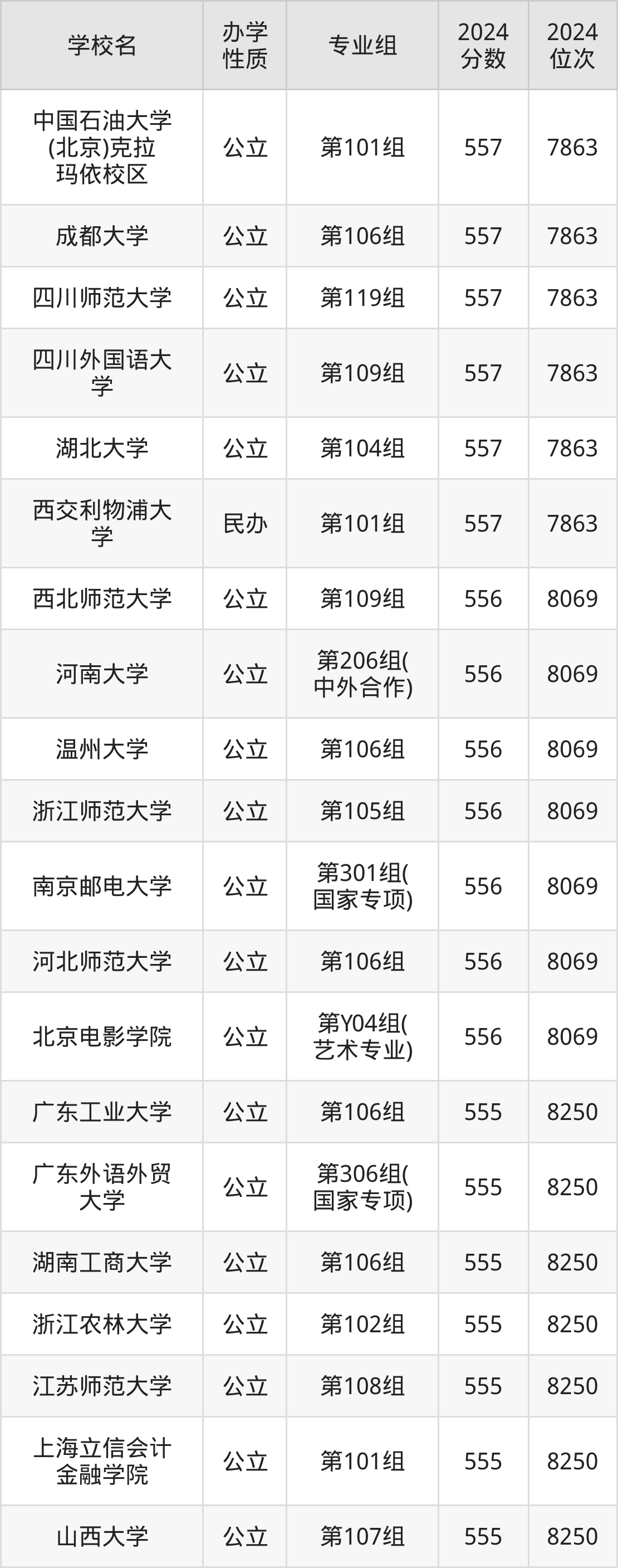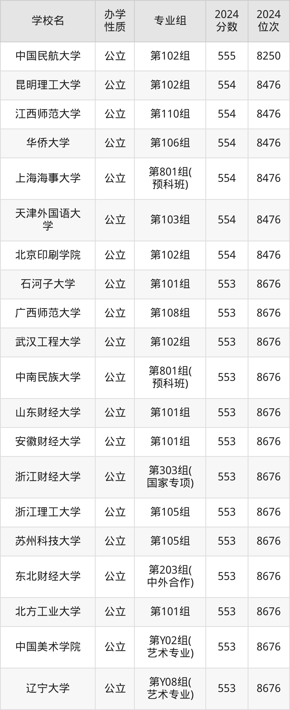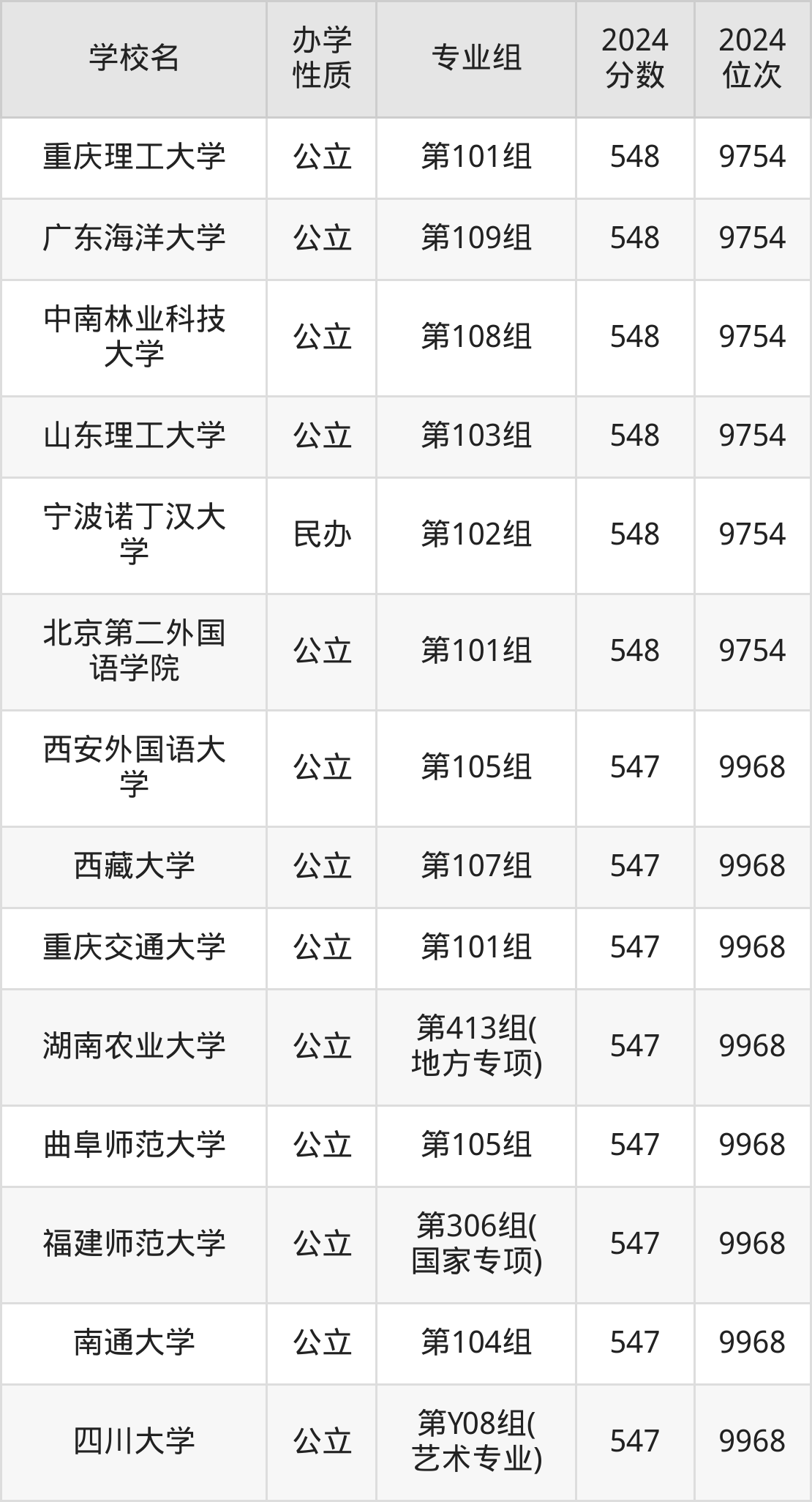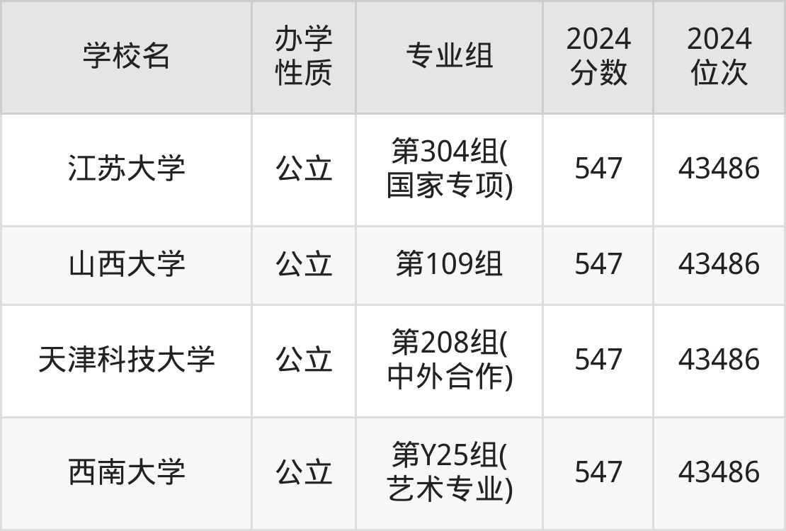 | 学校名 | 专业组 | 2024 分数 | 2024 位次 |