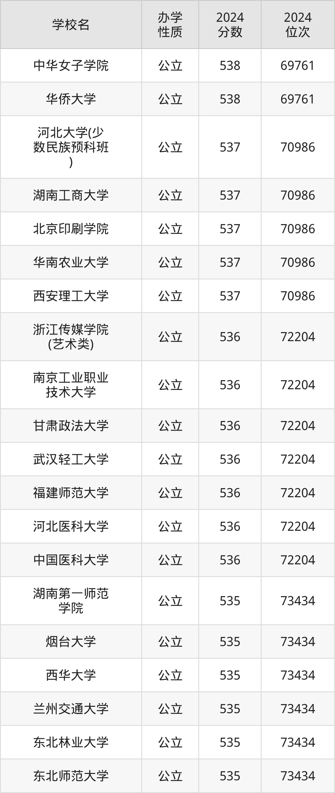 | 河北大学(少 数民族预科班 ) | 537 | 70986 |