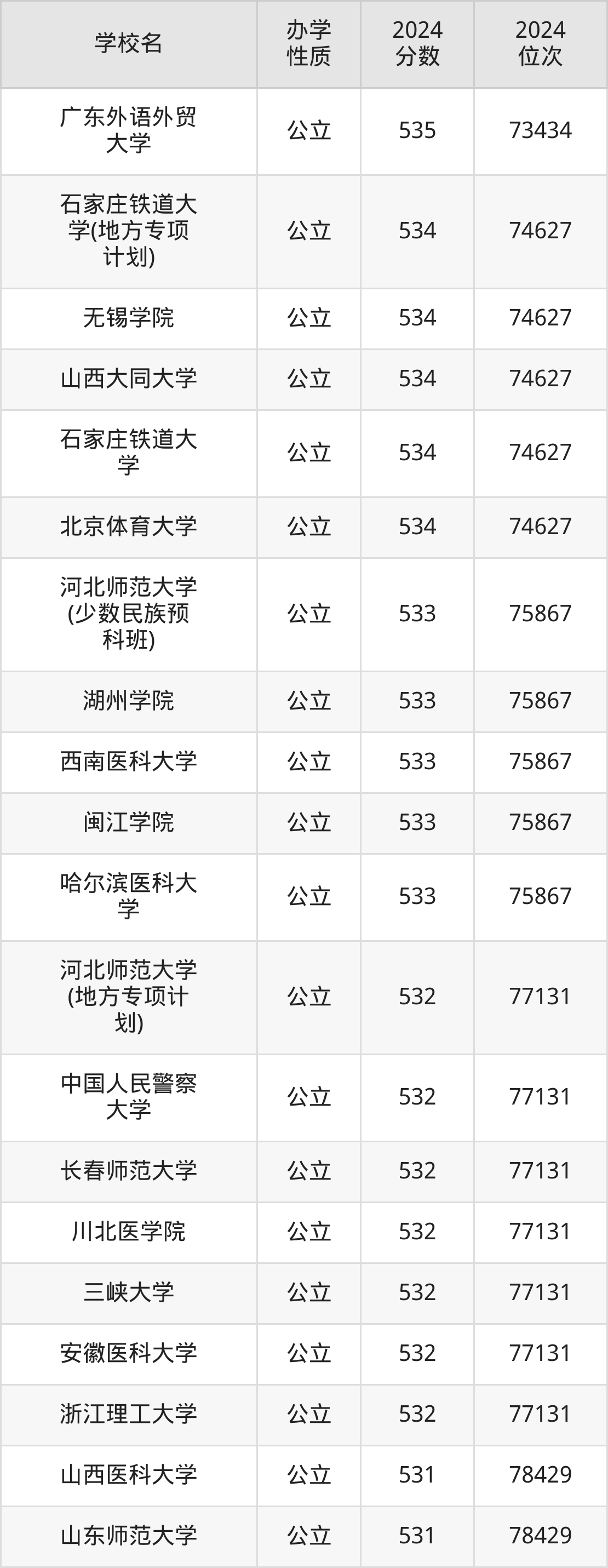 | 河北师范大学 (地方专项计 划) | 532 | 77131 |