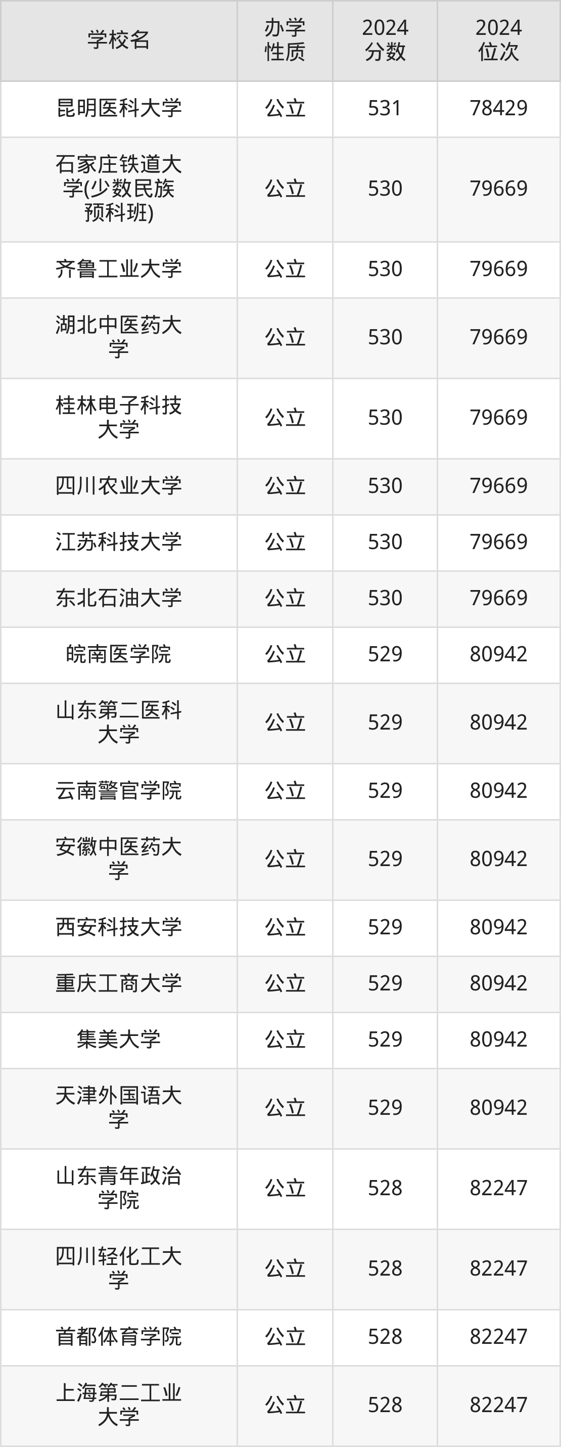 | 石家庄铁道大 学(少数民族 预科班) | 530 | 79669 |