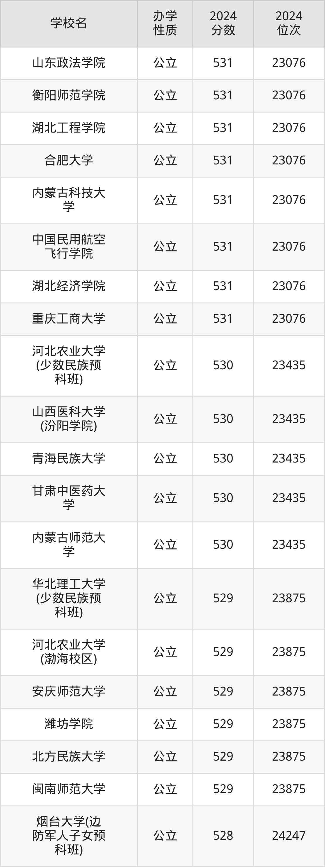 | 华北理工大学 (少数民族预 科班) | 529 | 23875 |