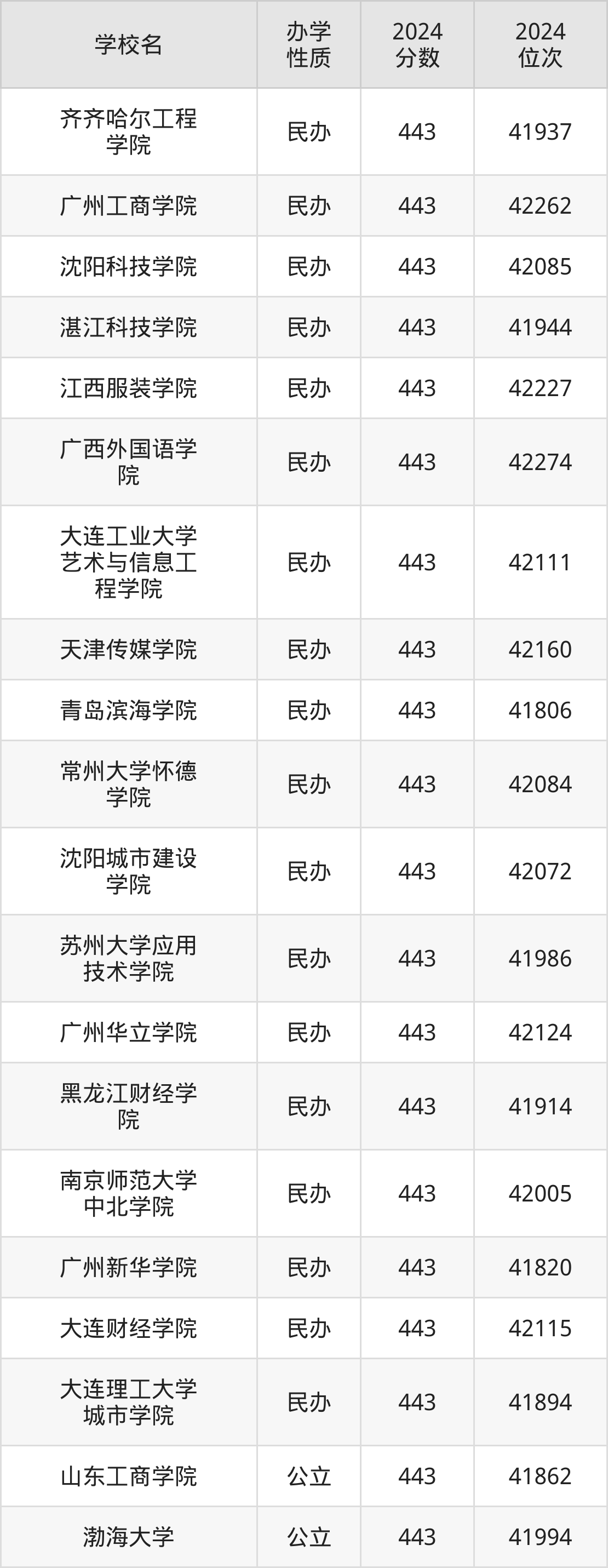 2024年贵州历史类438分考生能上齐齐哈尔工程学院、广州工商学院、沈阳科技学院、湛江科技学院、江西服装学院等66所二本院校,具体录取分数线及位次为: