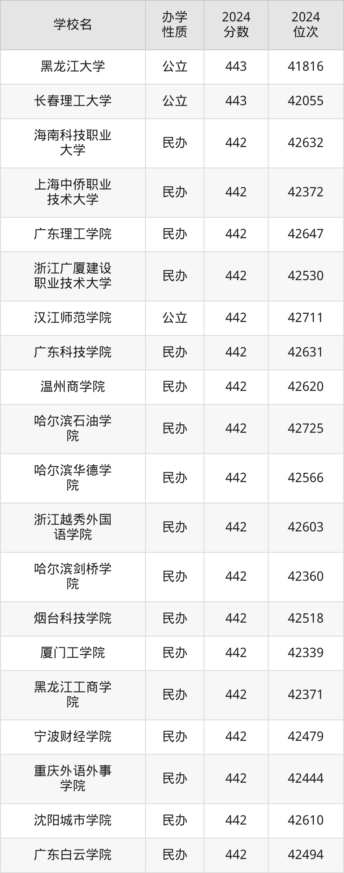 | 黑龙江外国语 学院 | 442 | 42720 |