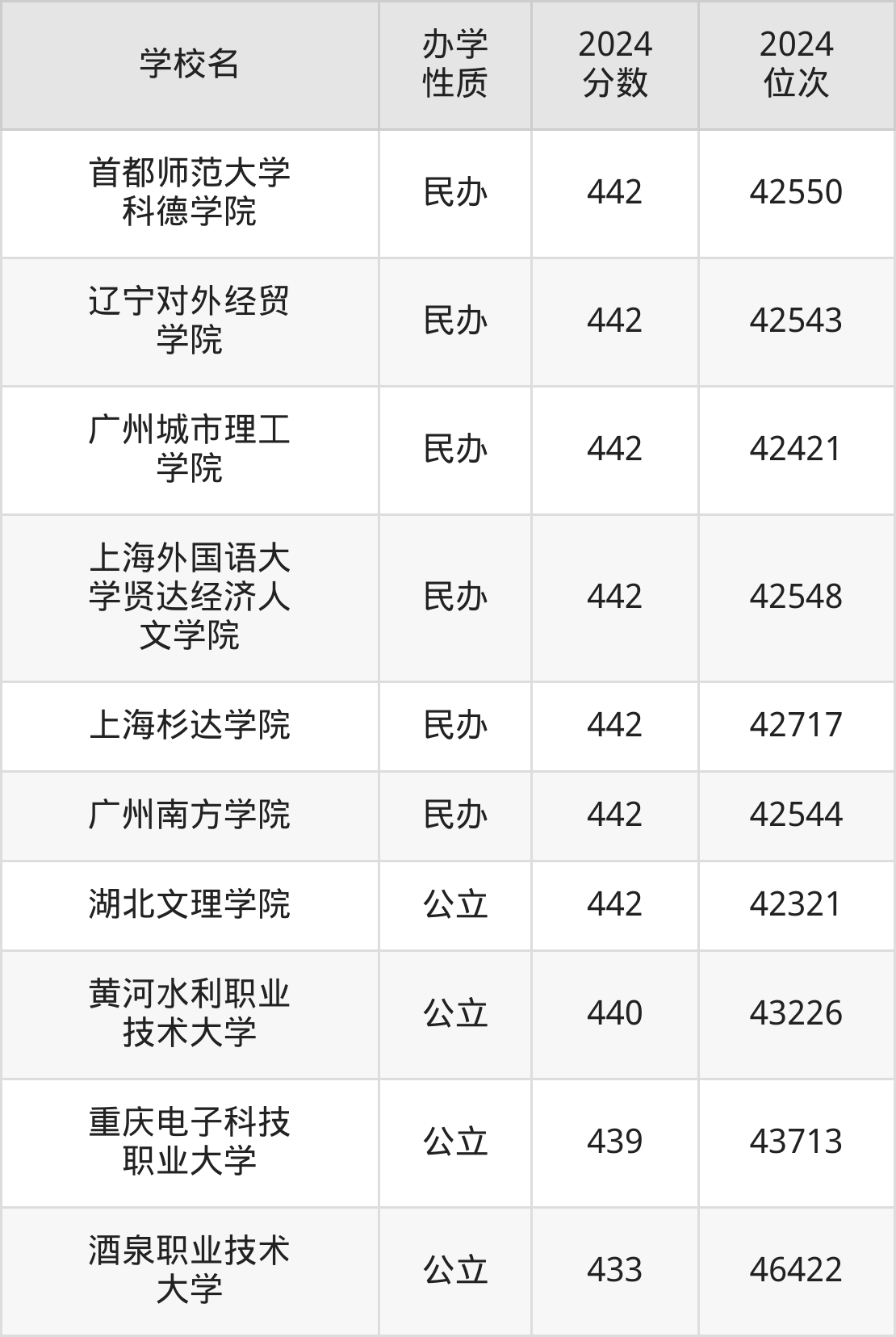 | 首都师范大学 科德学院 | 442 | 42550 |
