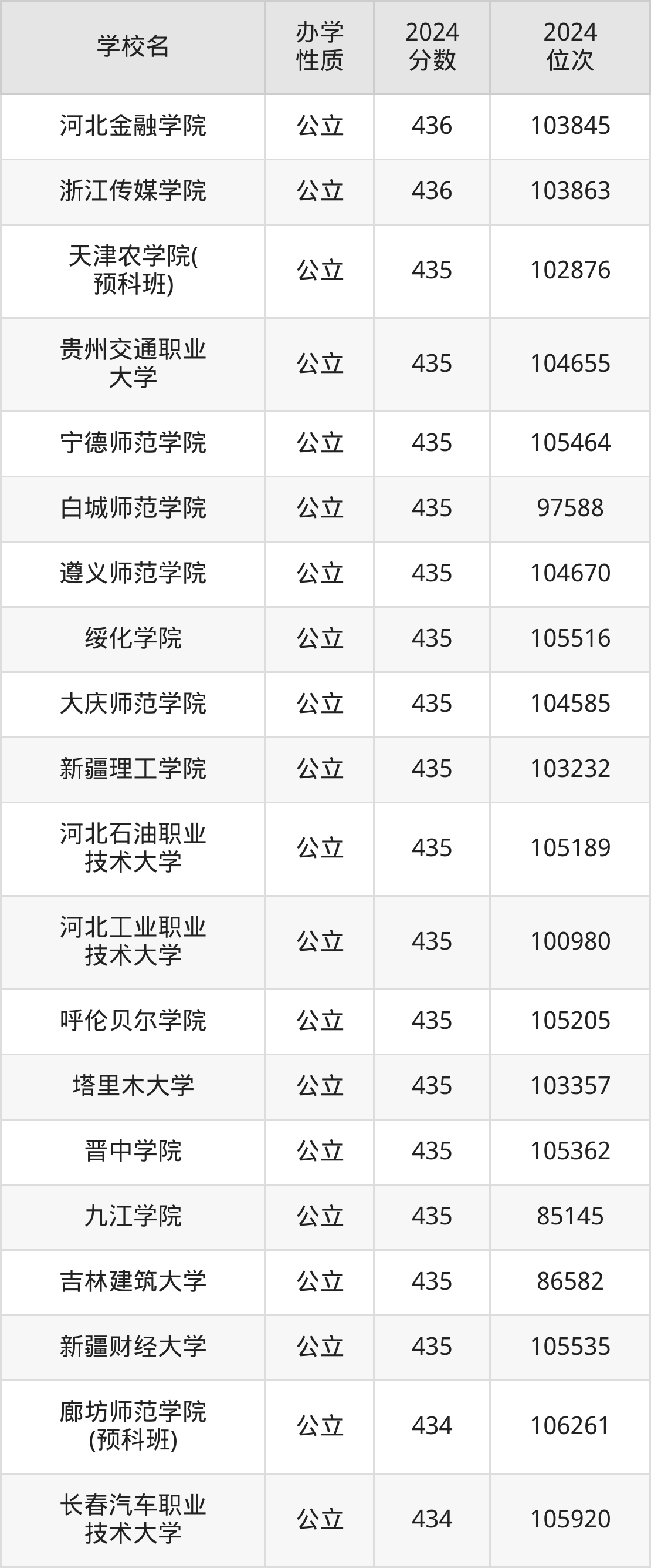 | 廊坊师范学院 (预科班) | 434 | 106261 |