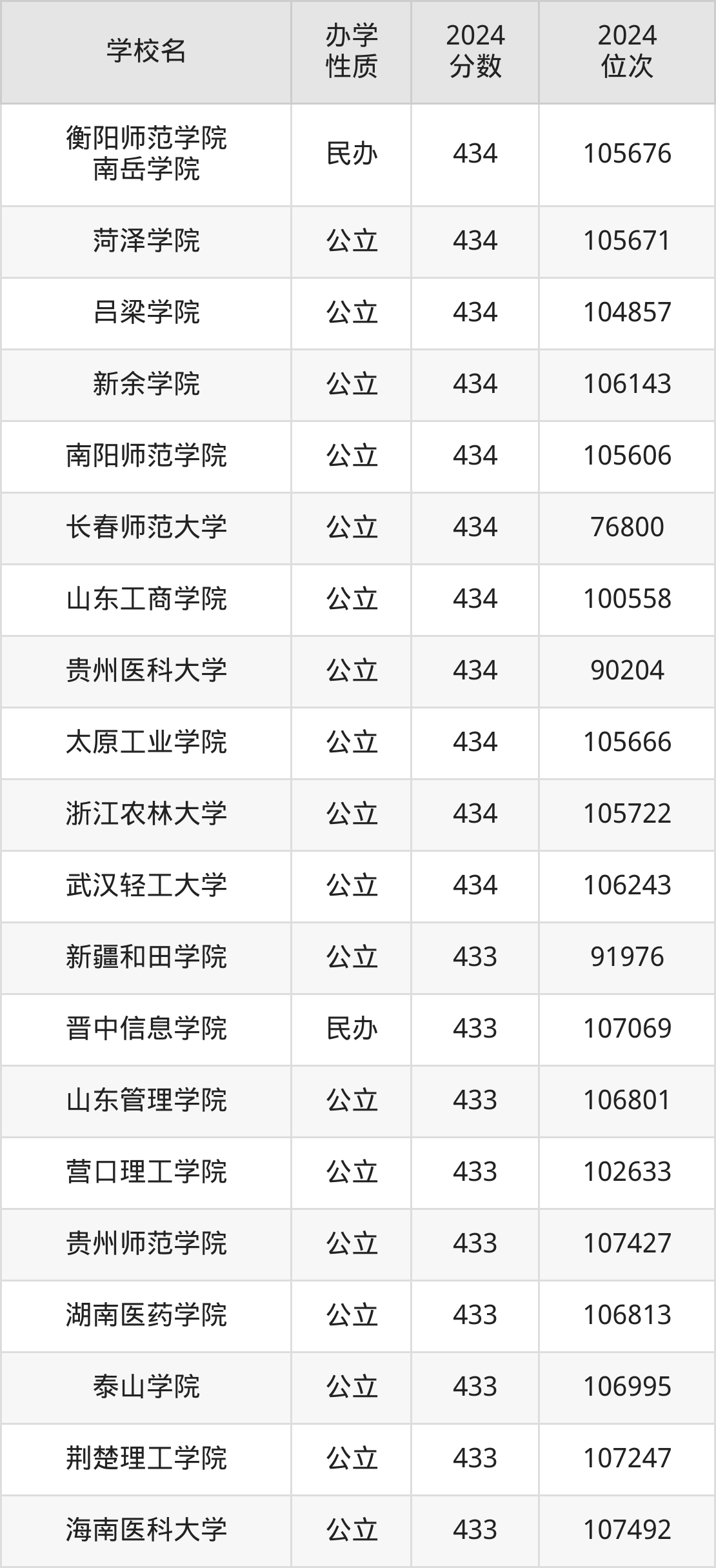| 衡阳师范学院 南岳学院 | 434 | 105676 |
