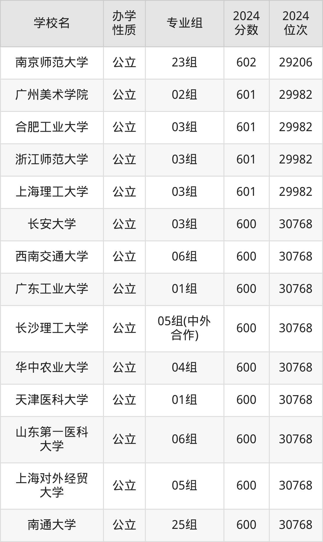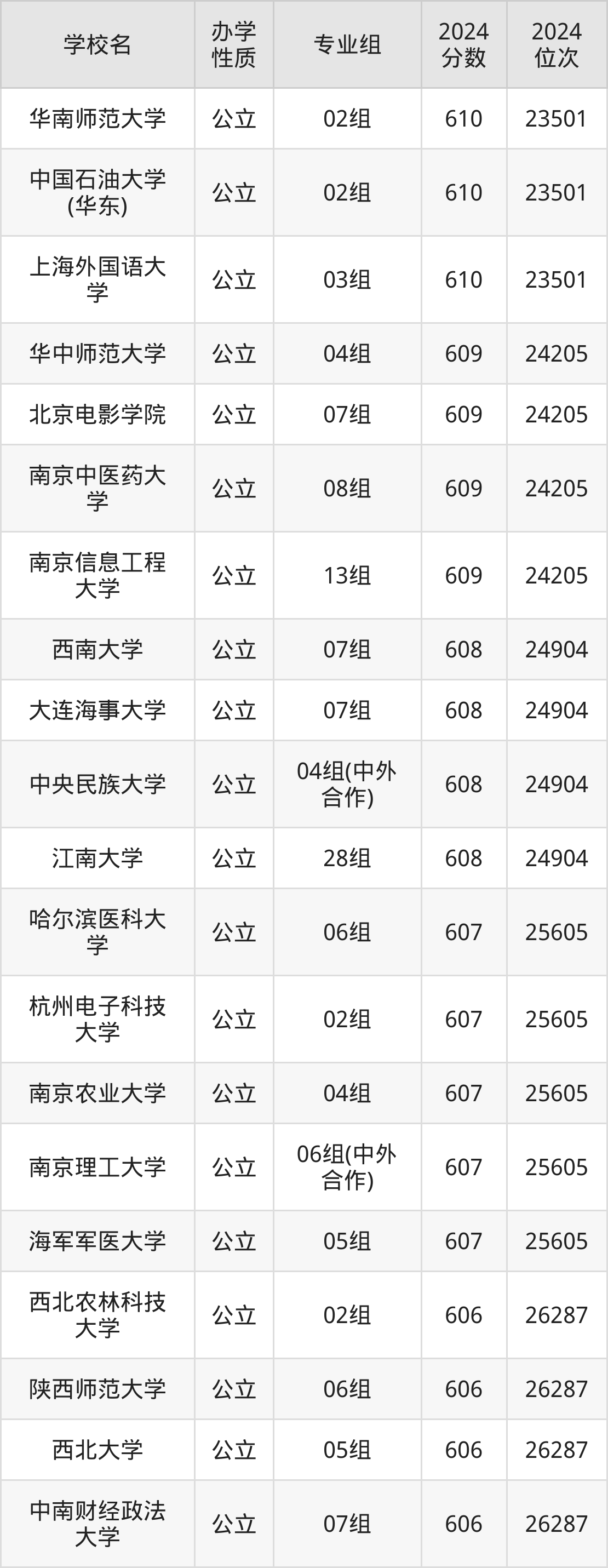 | 学校名 | 专业组 | 2024 分数 | 2024 位次 |