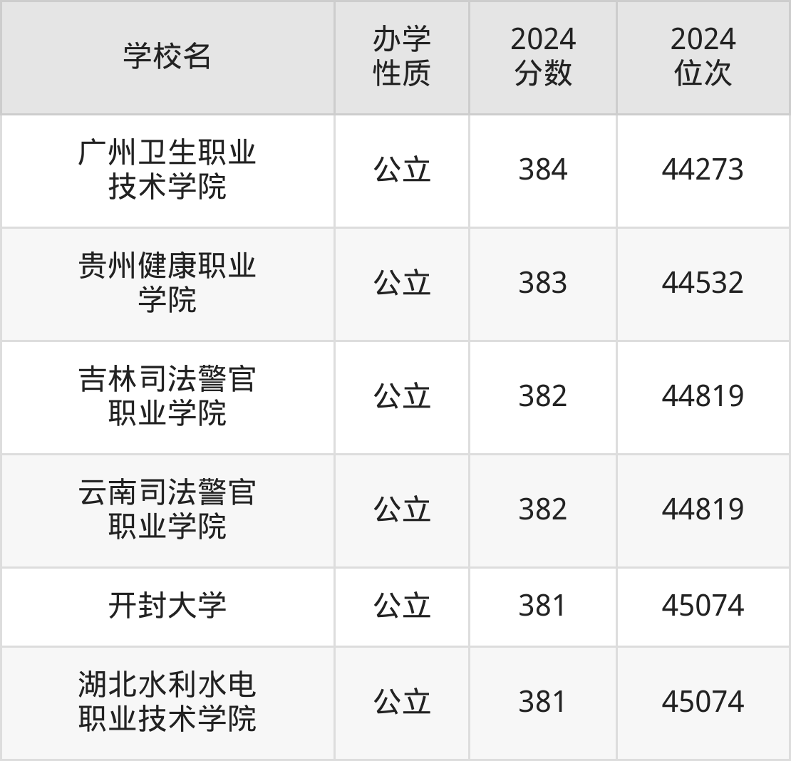 | 贵州健康职业 学院 | 383 | 44532 |