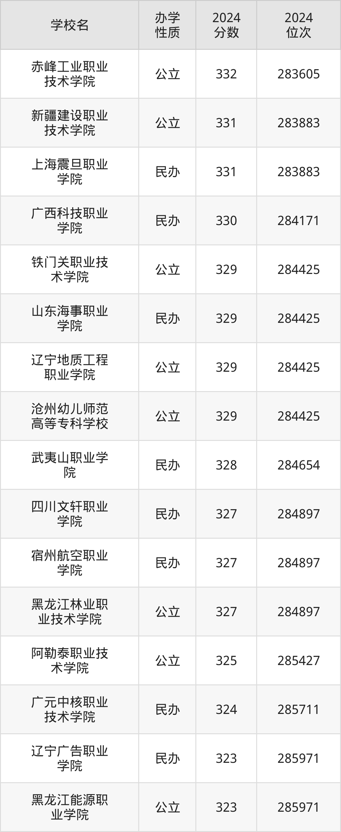 | 山东海事职业 学院 | 329 | 284425 |