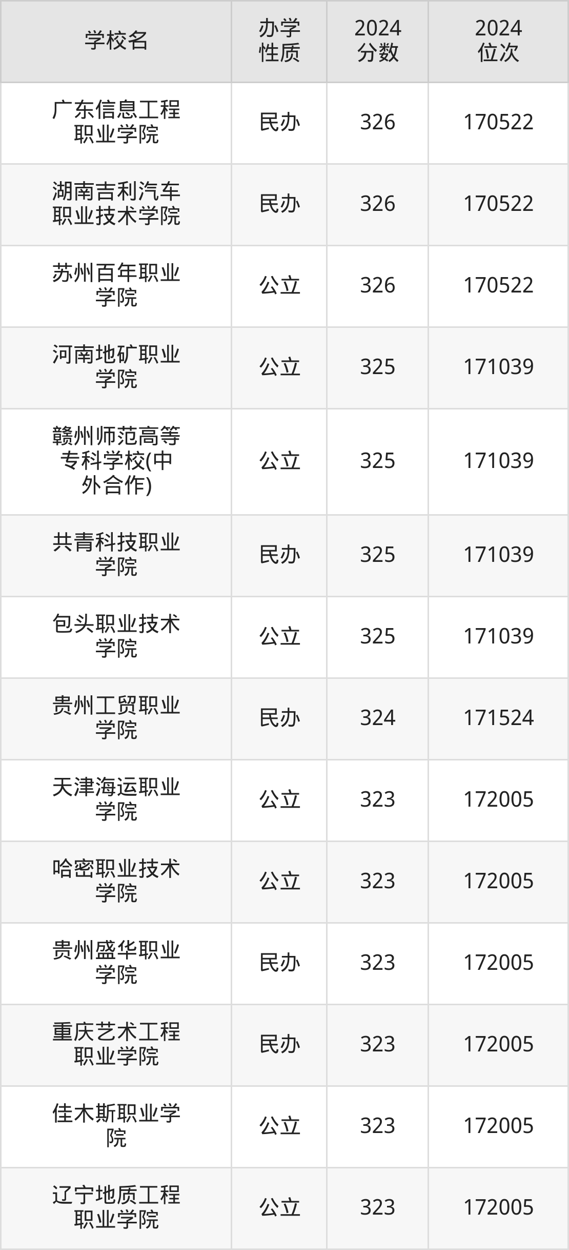 | 广东信息工程 职业学院 | 326 | 170522 |